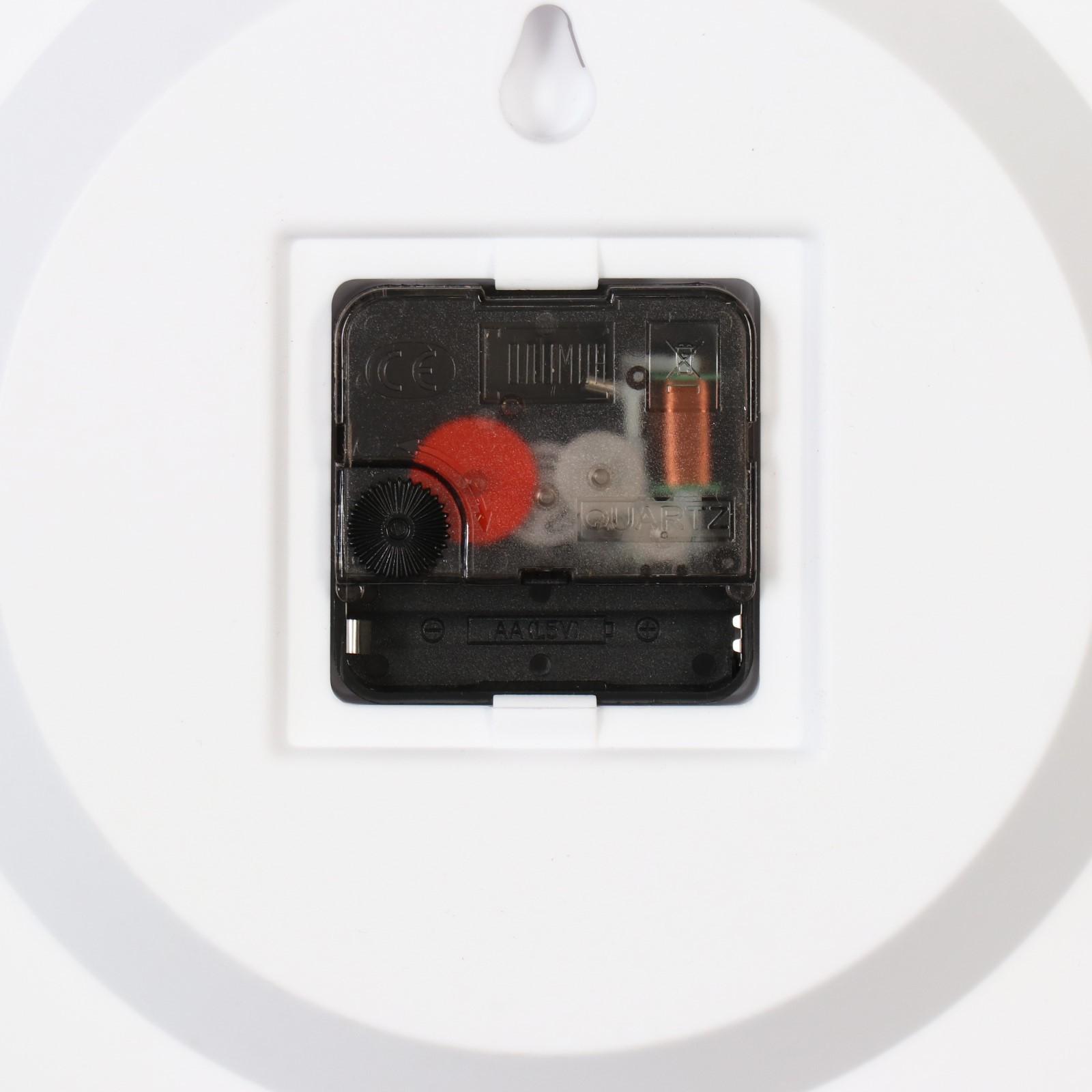 На задней стороне корпуса часов есть отверстие для подвешивания, работают от 1 батарейки типа АА (в комплект не входит).