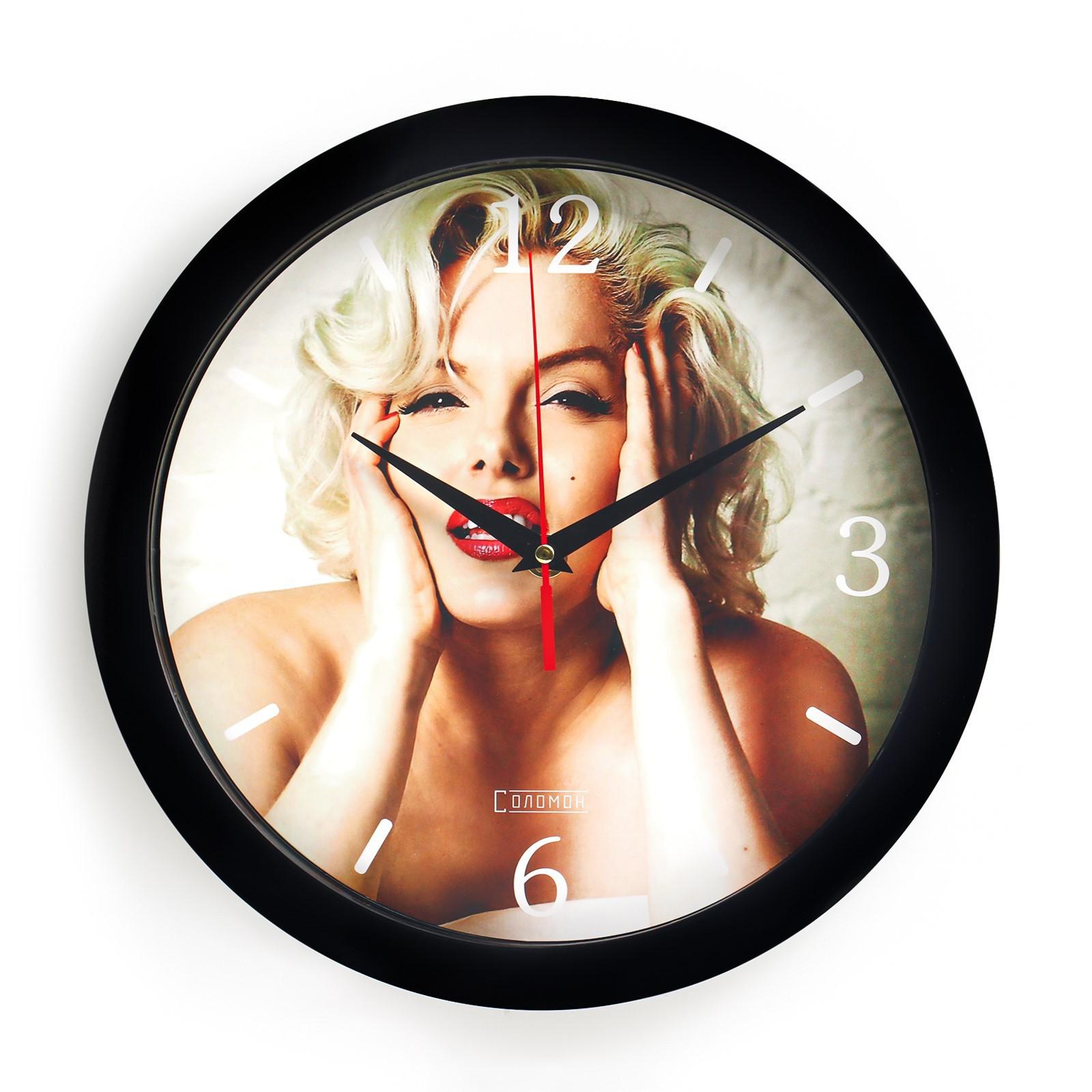 Часы настенные, серия: Люди, "Мерлин Монро", плавный ход, d=28 см, черные