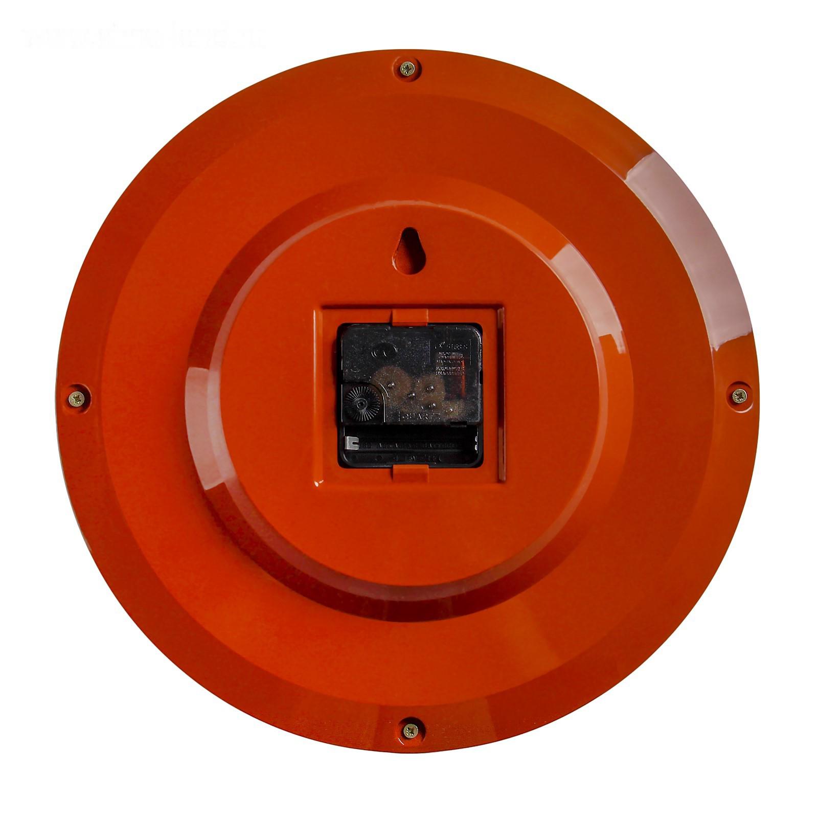 Диаметр часов 28 см, большие чёткие цифры, механизм - кварцевый с плавным ходом, корпус выполнен из экологически-чистого пластика, циферблат защищён прочным минеральным стеклом.
