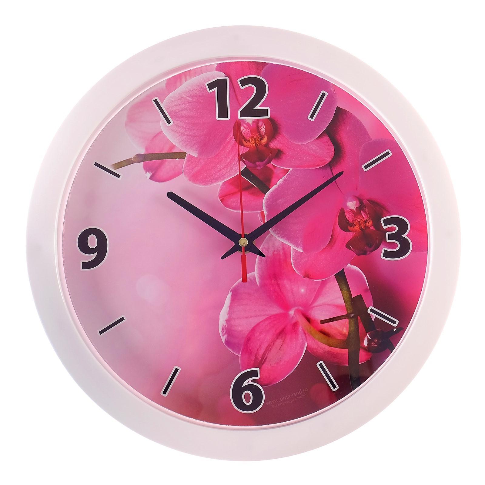 Часы настенные, серия: Цветы, "Орхидеи", плавный ход, d=28 см
