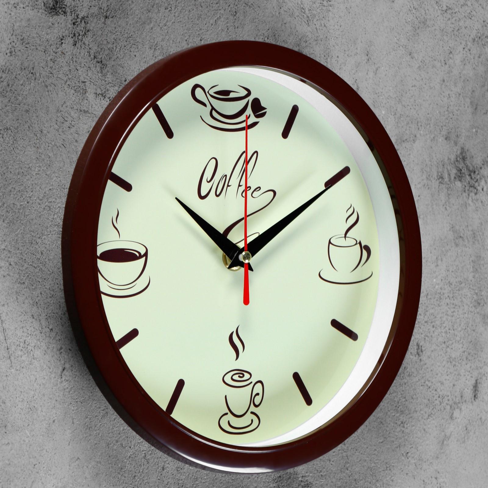 Часы настенные круглые "Coffee", обод коричневый, 22х22 см