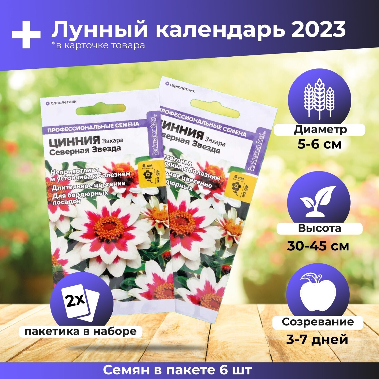 Семена цветов Цинния Захара "Северная звезда", 6 шт набор 2 шт