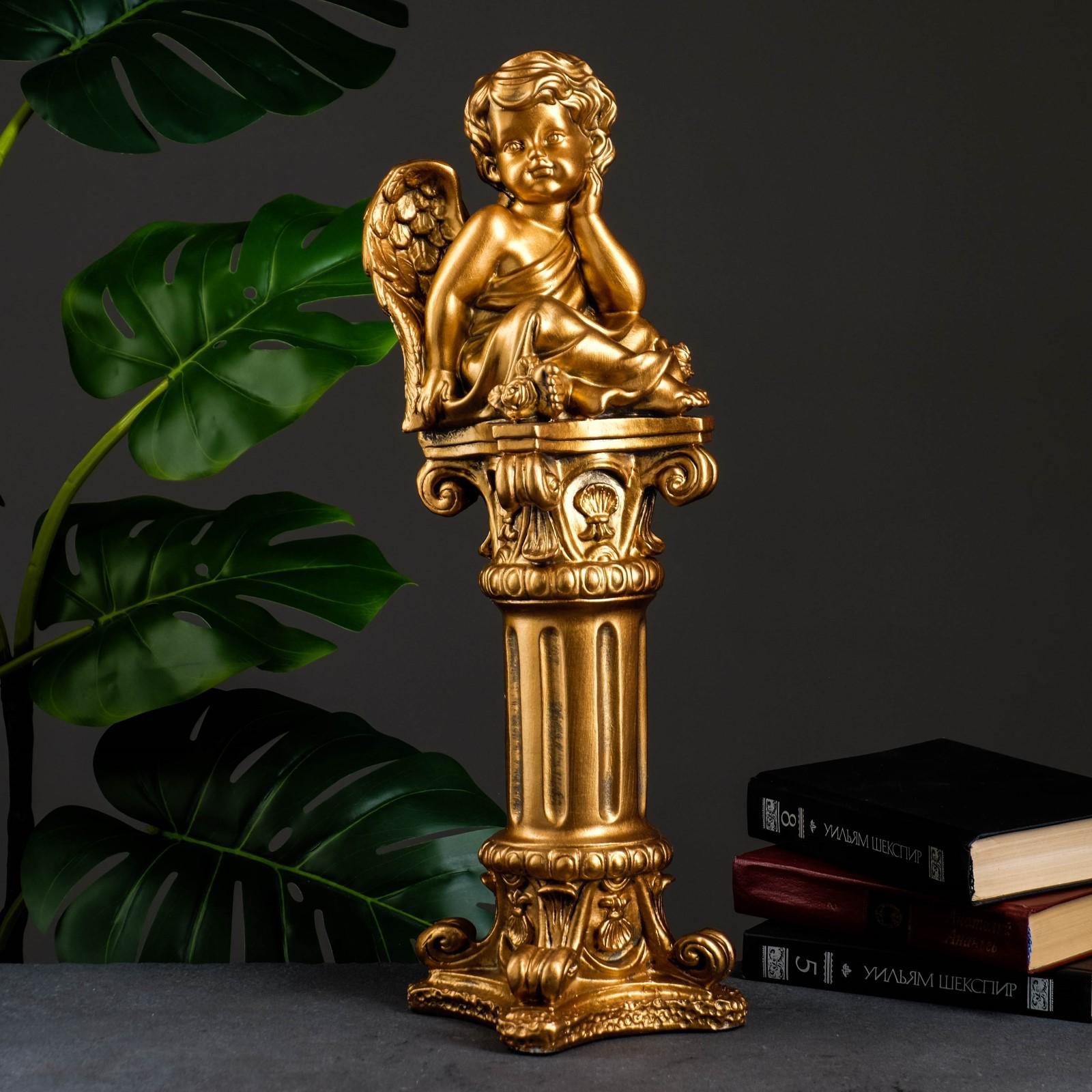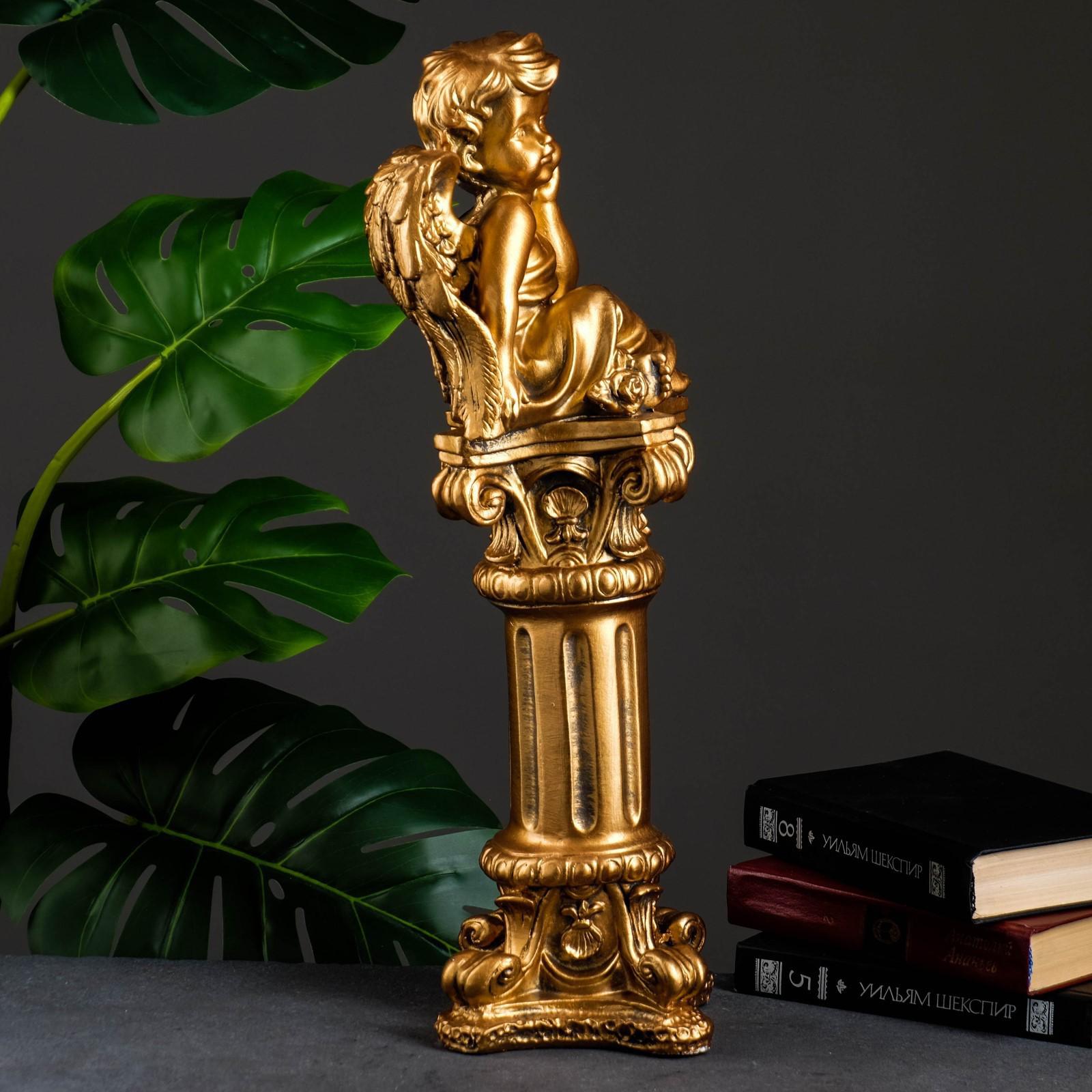 Фигура "Ангел сидя на колонне" бронза 14х14х53см