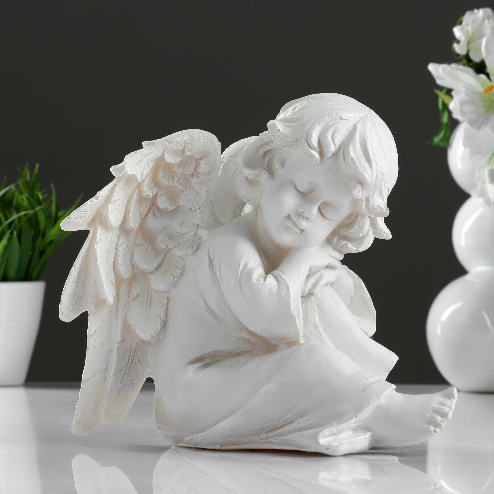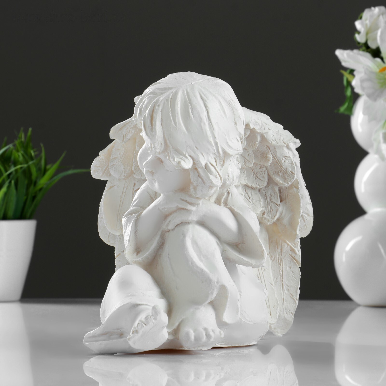 Фигура "Ангелочек с крыльями сидит" белый, 17х20х25см