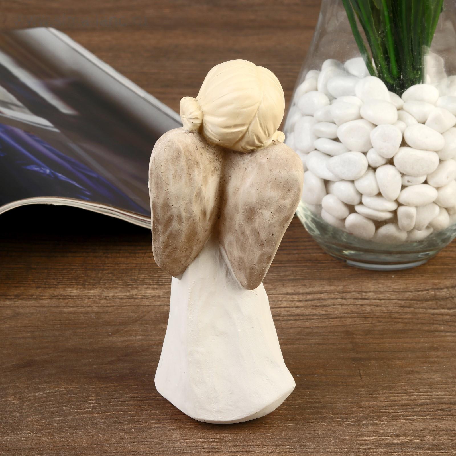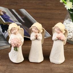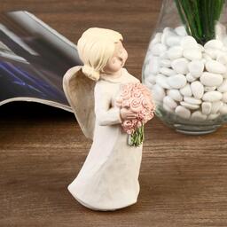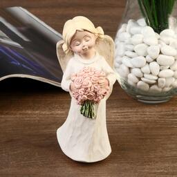 Сувенир полистоун "Ангел-девочка с двумя шишечками, с букетом/сердцем" МИКС 15х5,8х5,,4 см