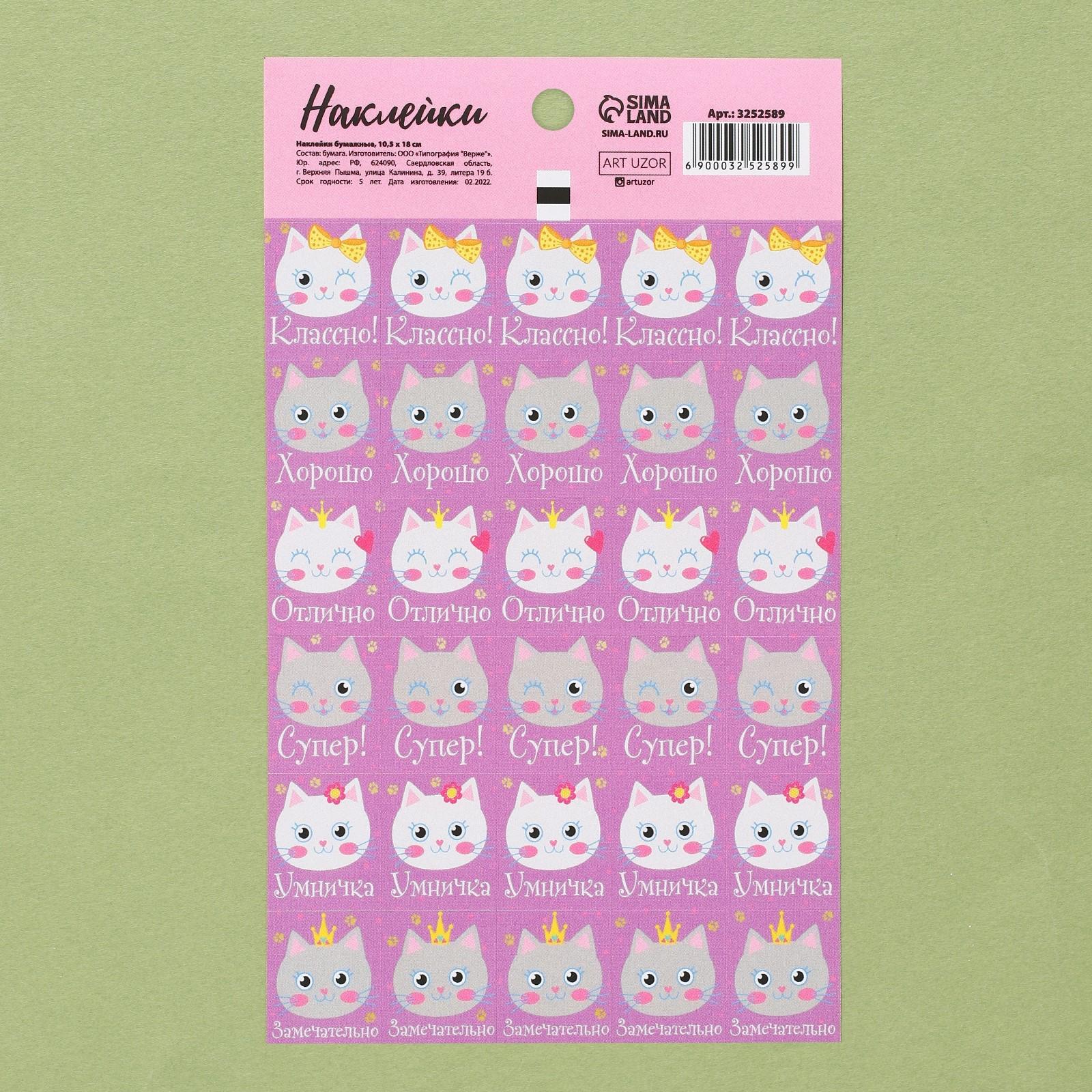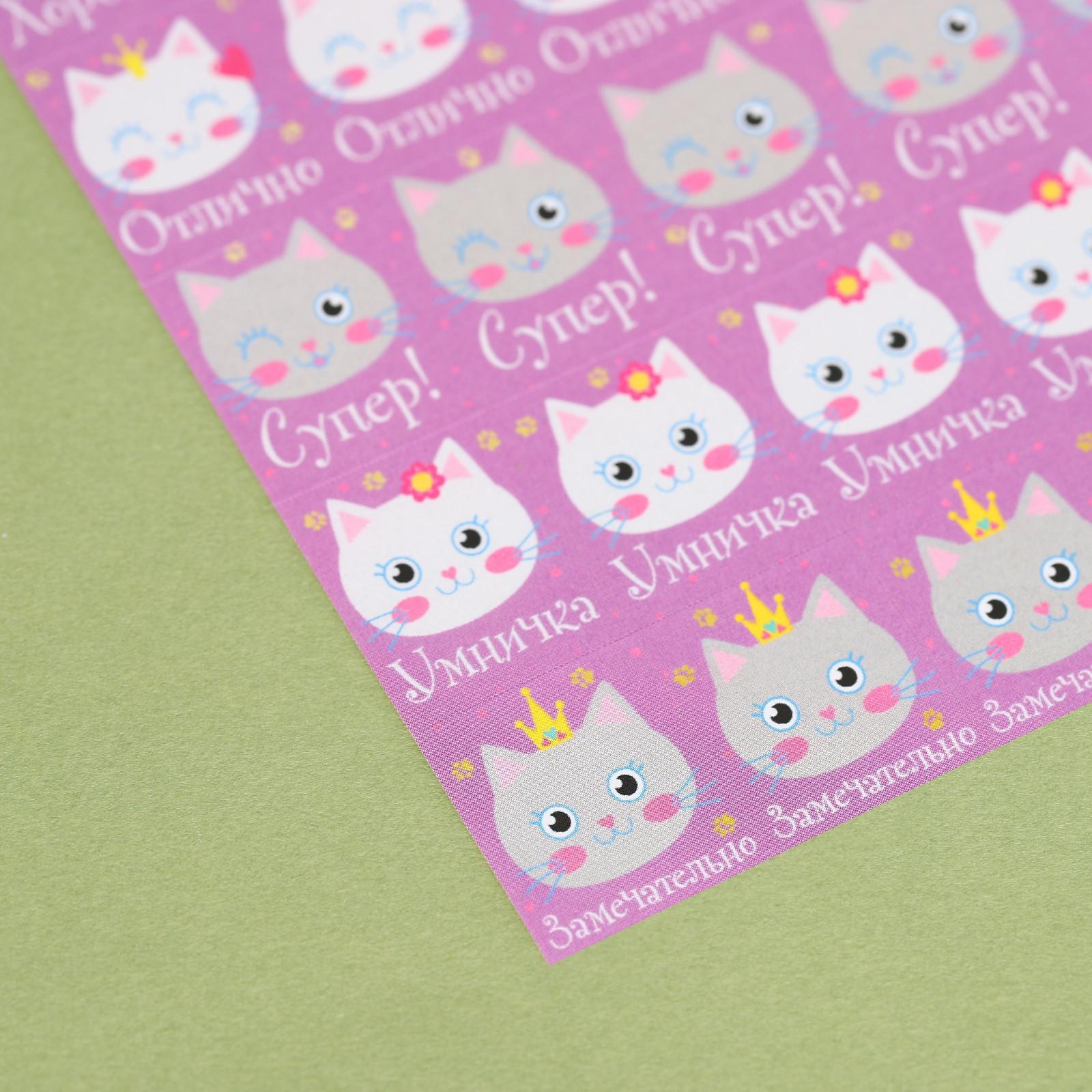 Бумажные наклейки оценки «Кошечки», 10,5 х 18 см