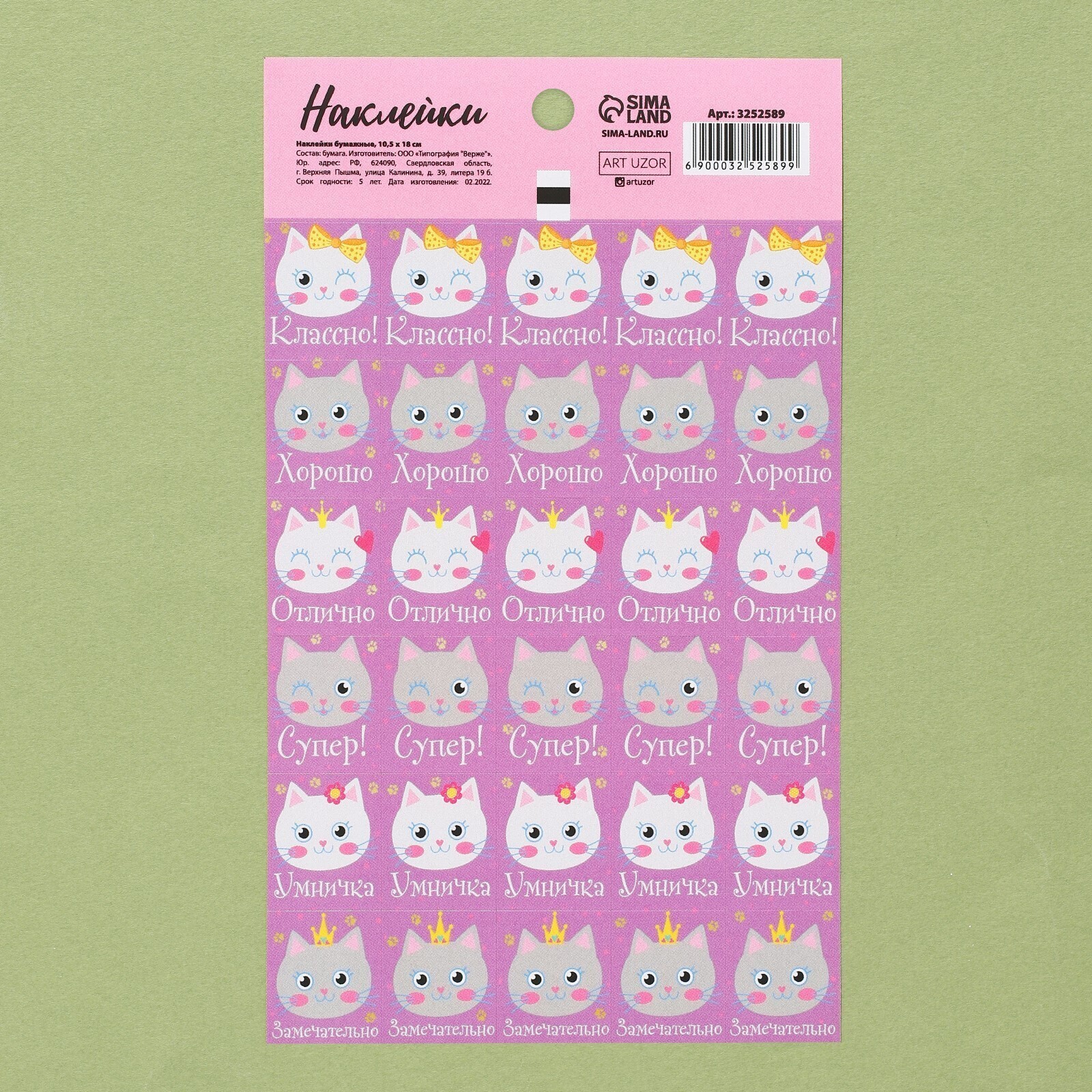 • Вид наклейки Бумажная, Наклейка-оценка