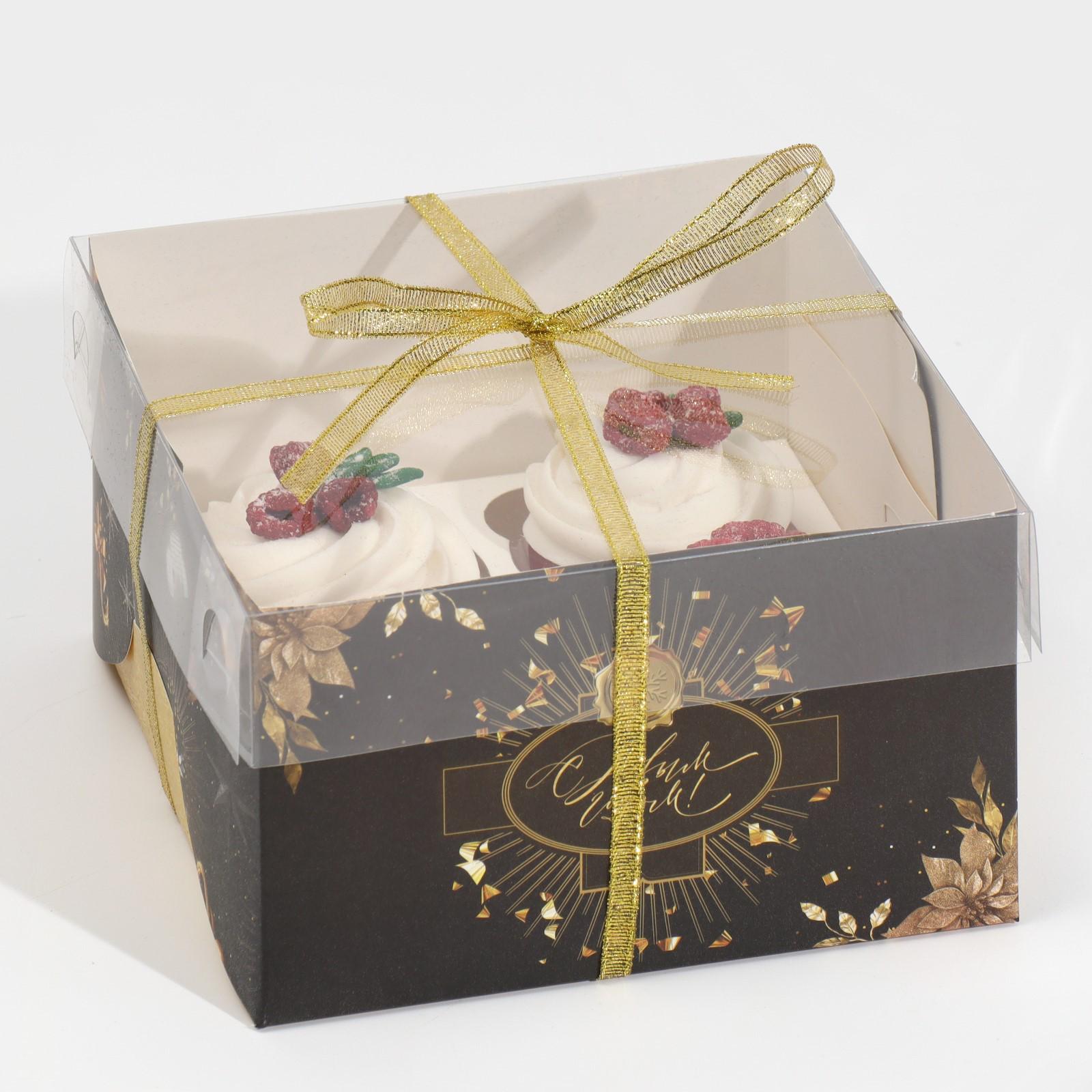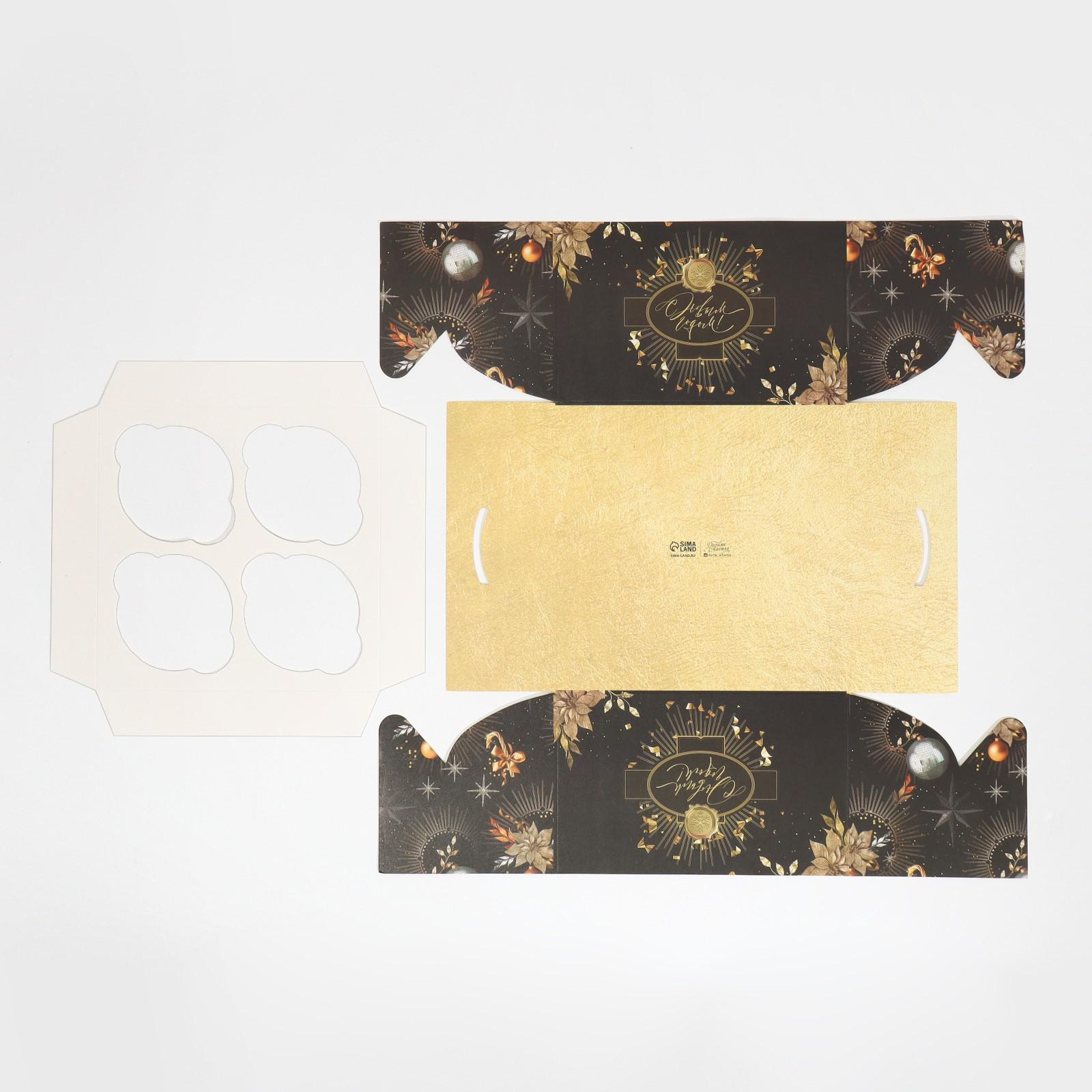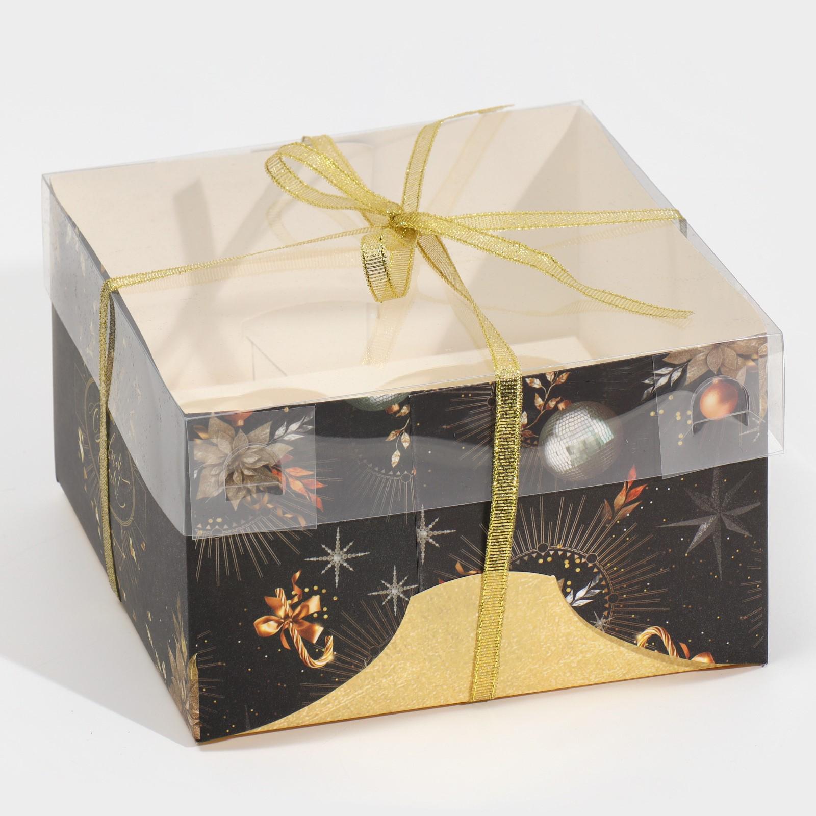 Коробка для капкейка «Чёрно-золотой», 16 × 16 × 10 см