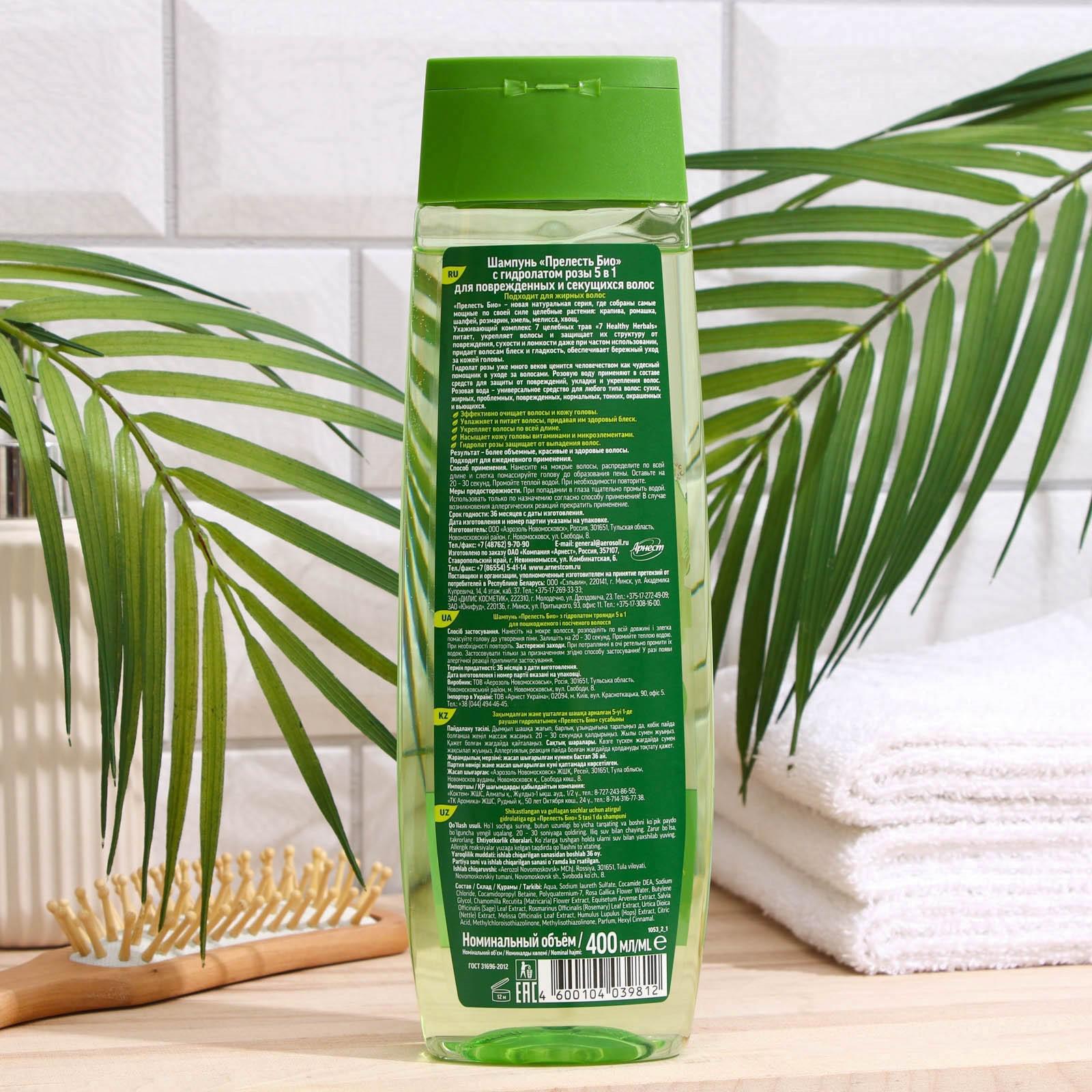 Шампунь "Прелесть БИО", с гидролатом розы, 5 в 1, для поврежденных и секущихся волос, 400 мл
