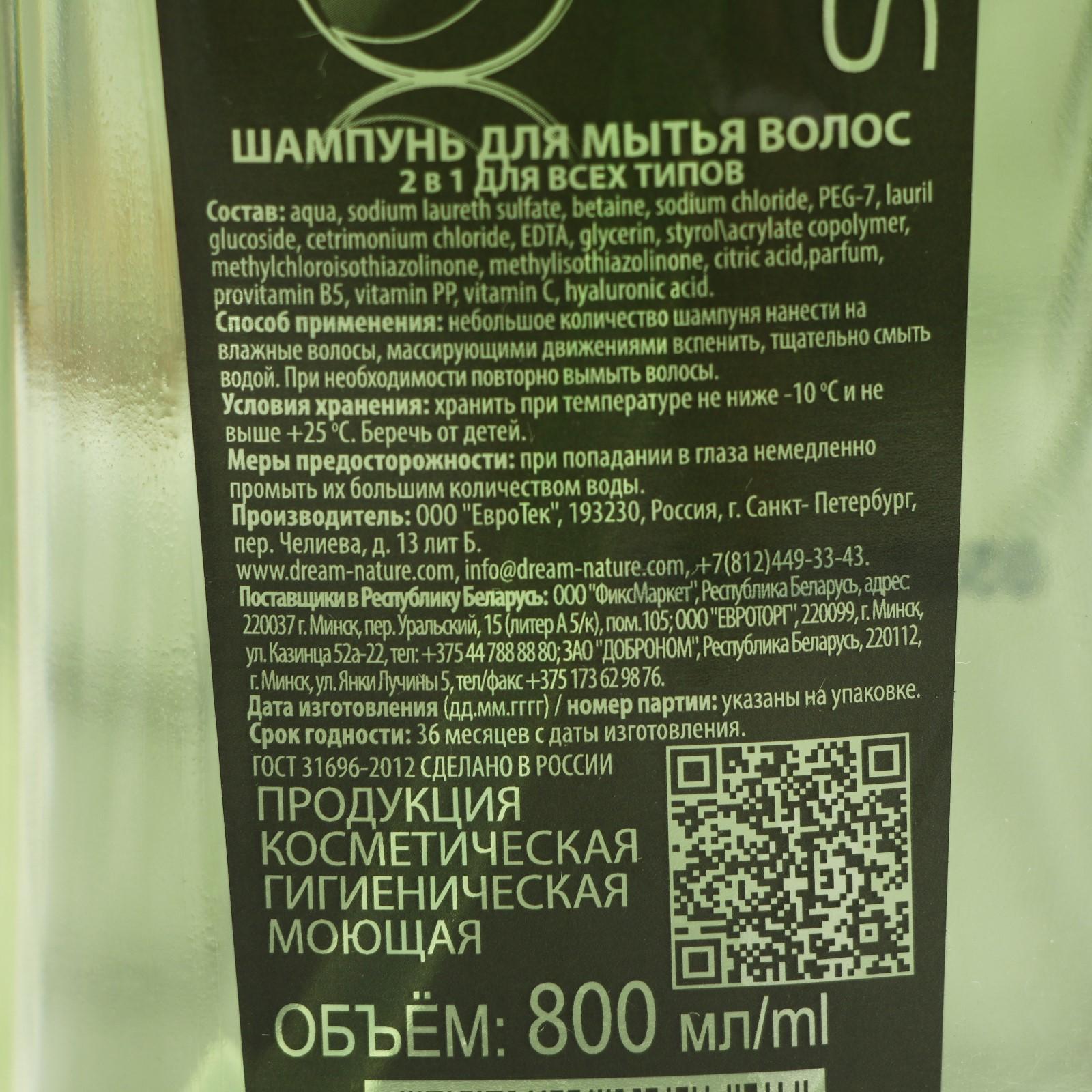 Шампунь Dream Nature, 2 в 1, с Гиалуроновой кислотой и Витаминным комплексом, 800 мл