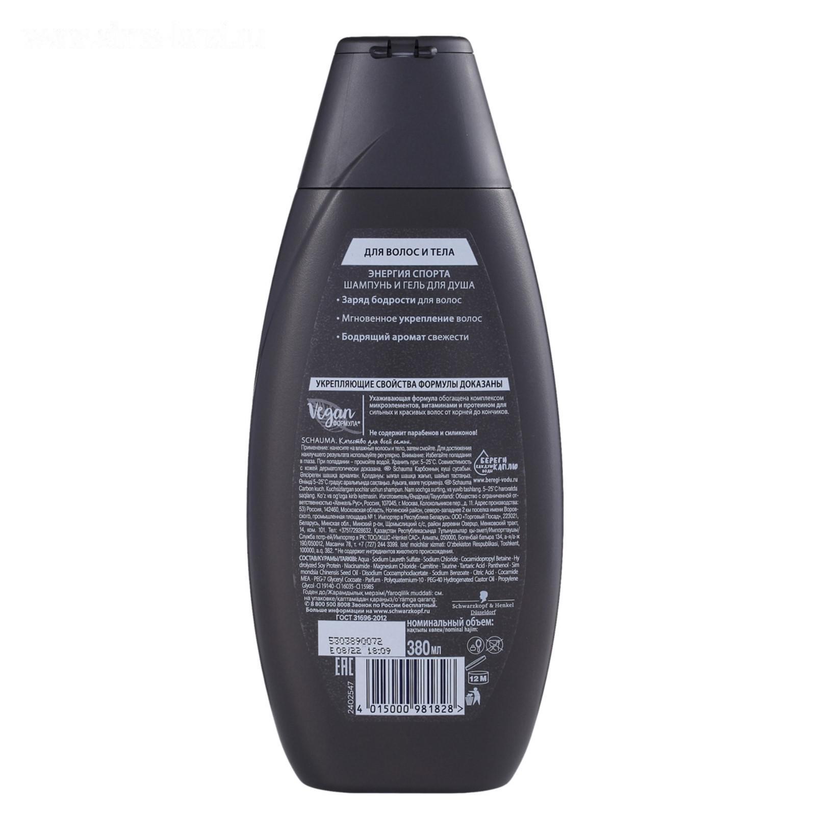 Шампунь для волос Schauma «Энергия спорта», для мужчин, 380 мл