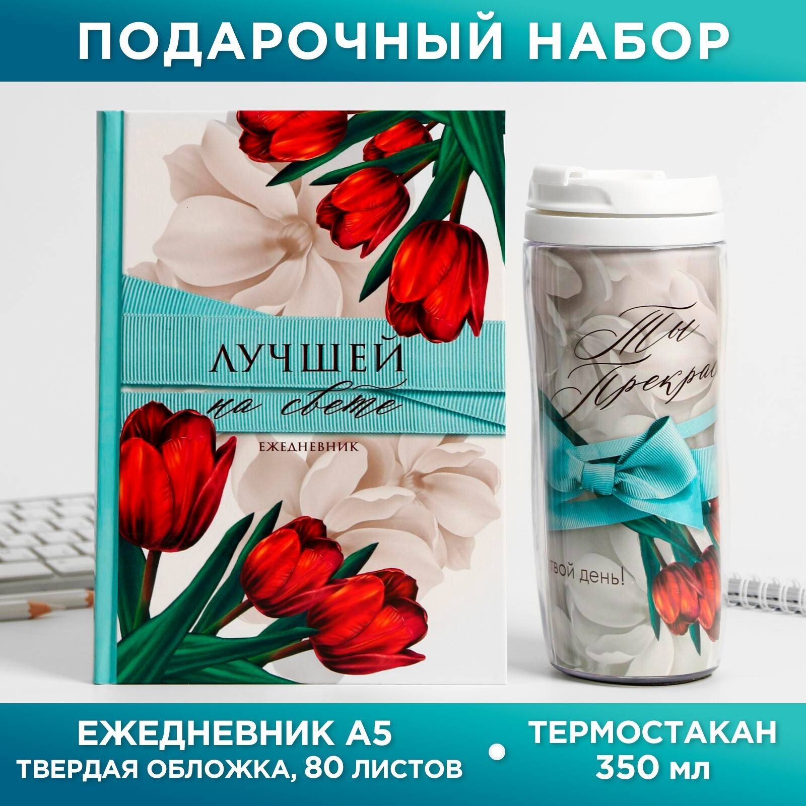 Подарочный набор «Цвети от счастья»: ежедневник и термостакан
