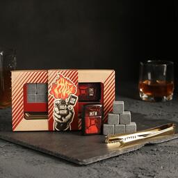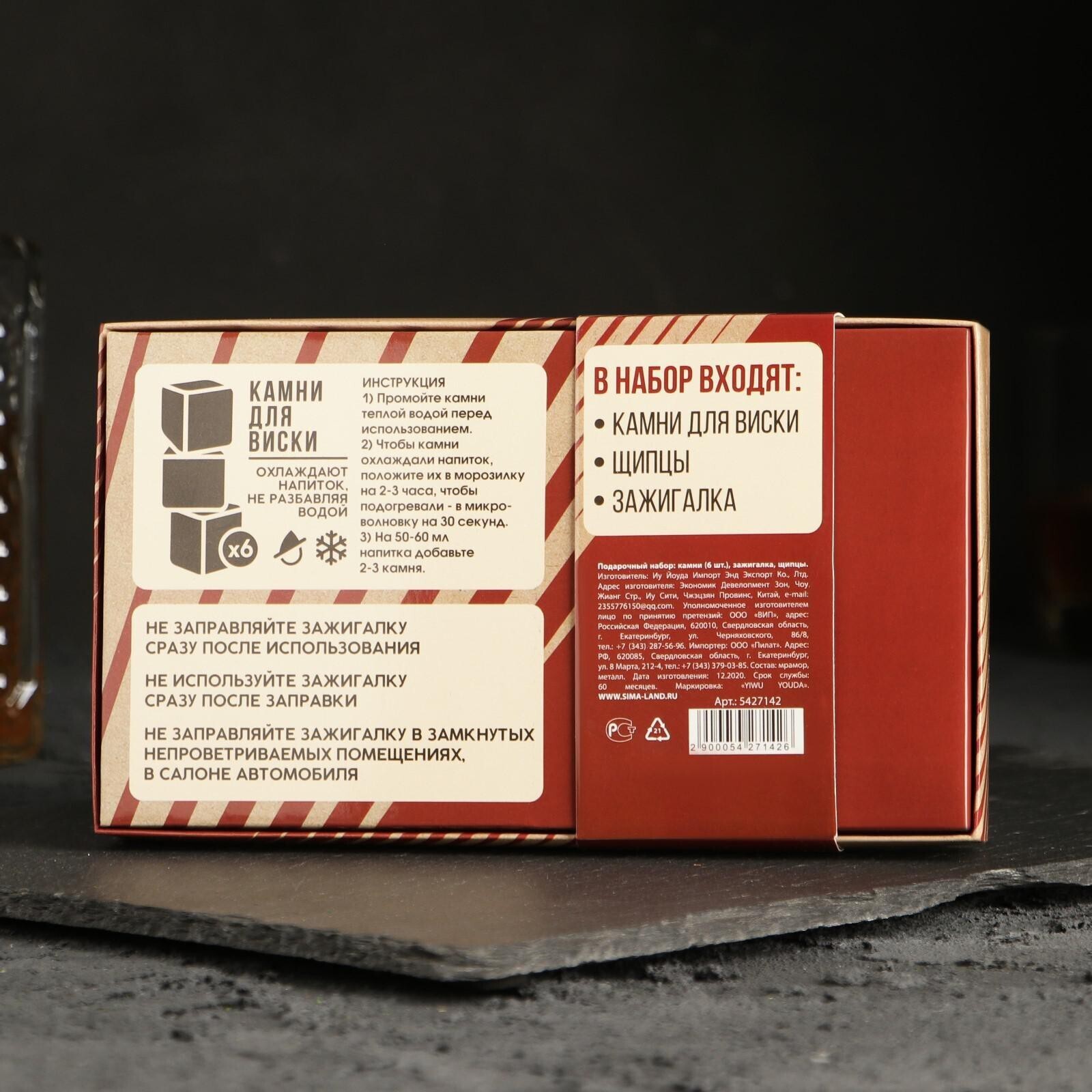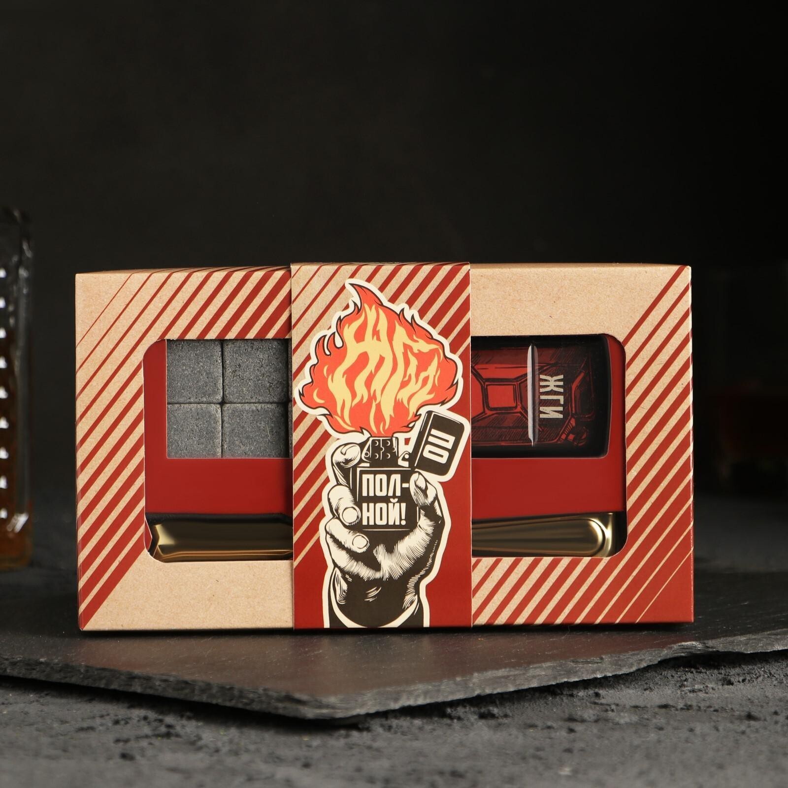 Подарочный набор "По полной", камни 6 шт, зажигалка, щипцы