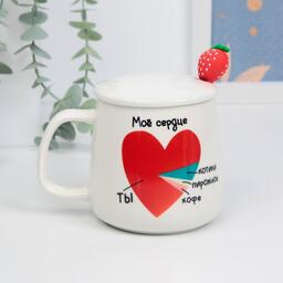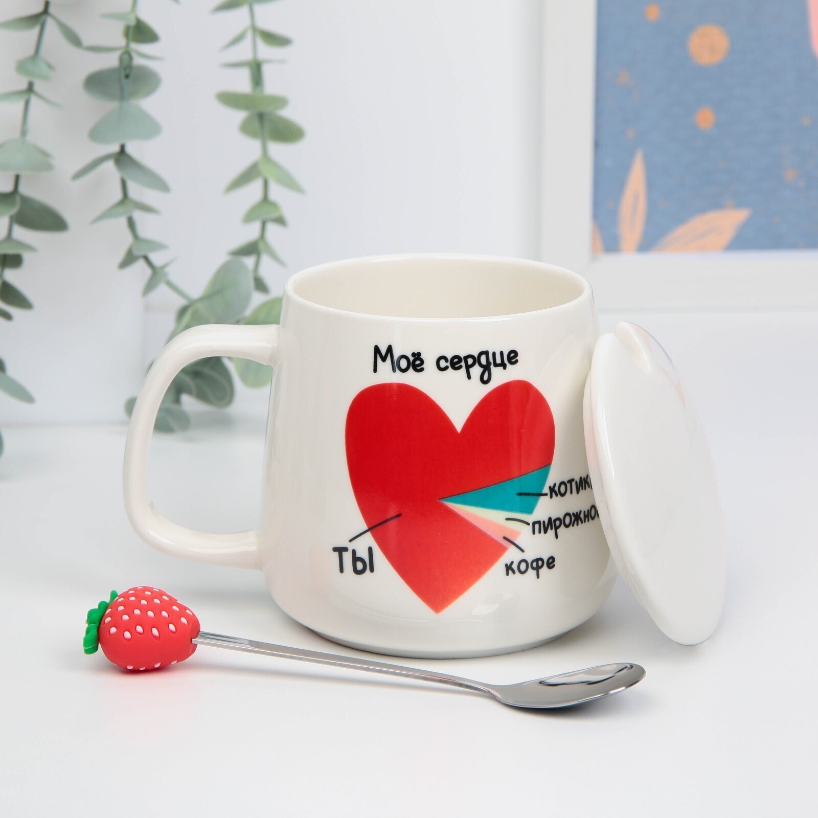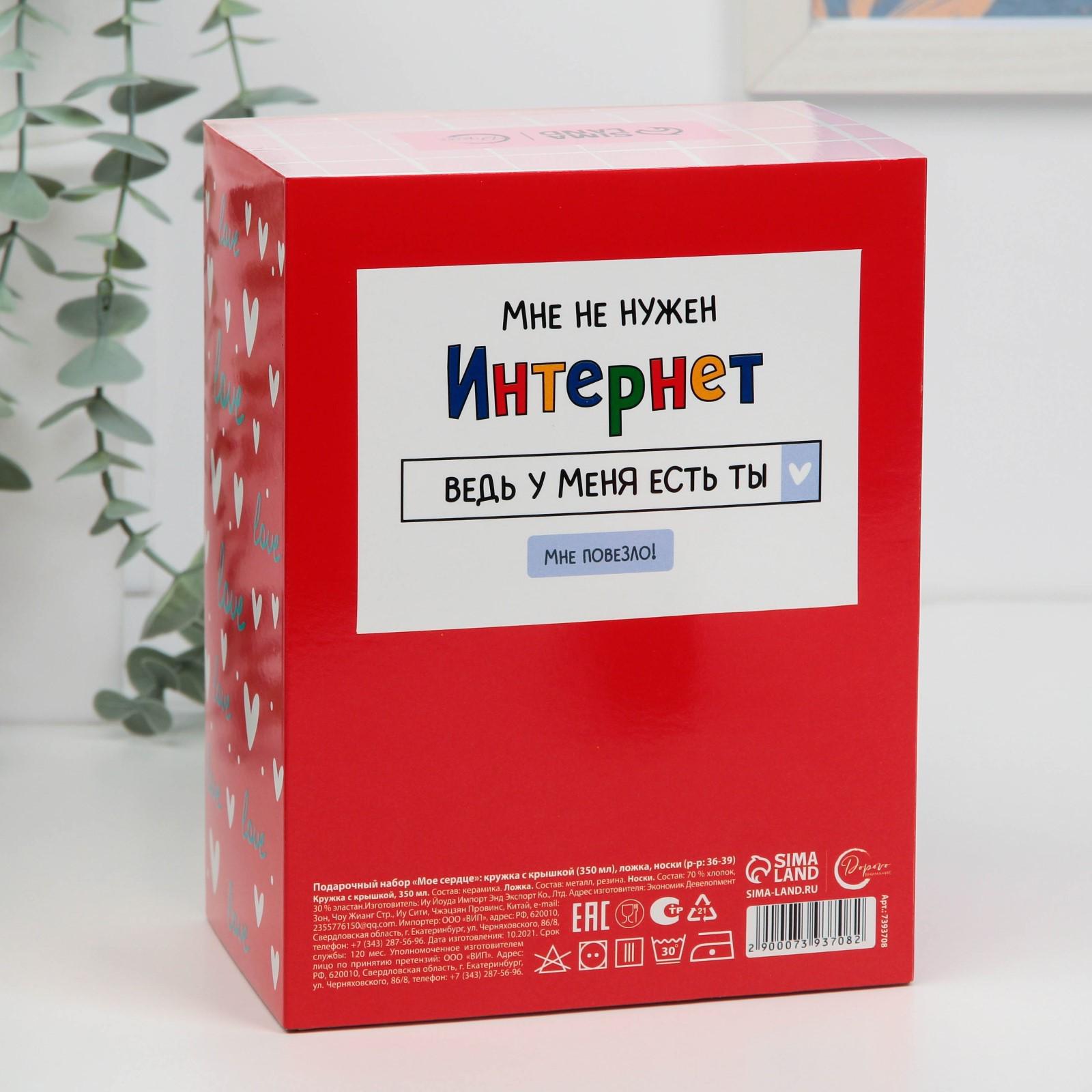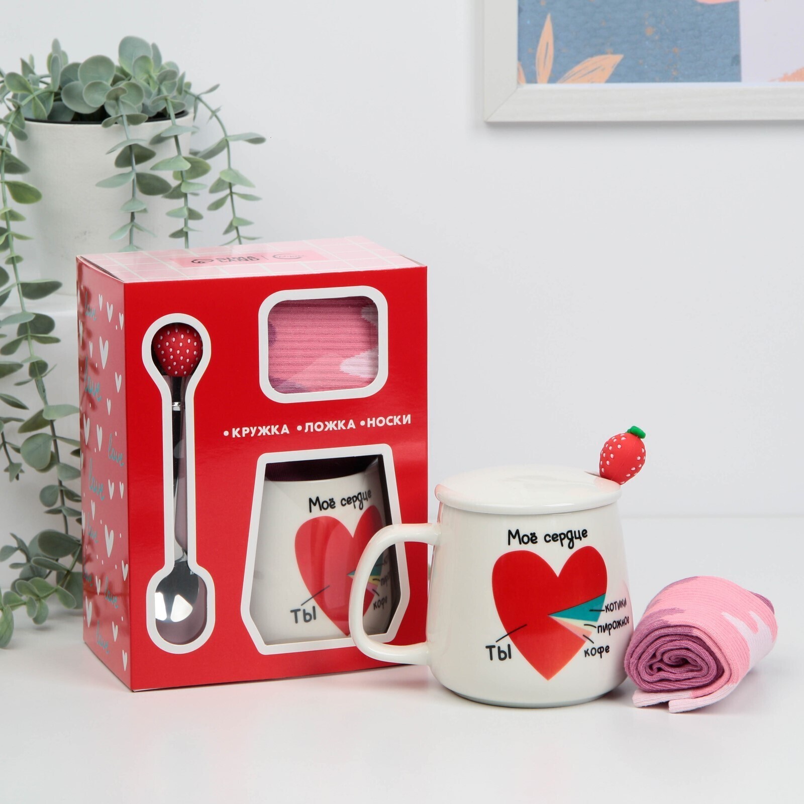 Подарочный набор «Мое сердце», кружка с крышкой 350 мл, ложка, носки 36-39 р-р.