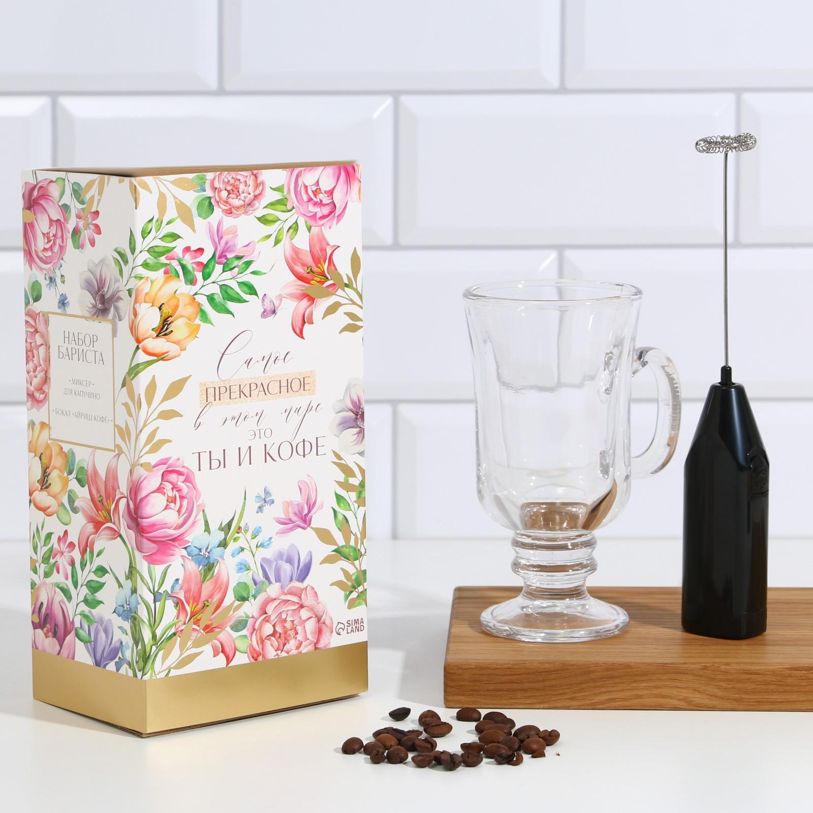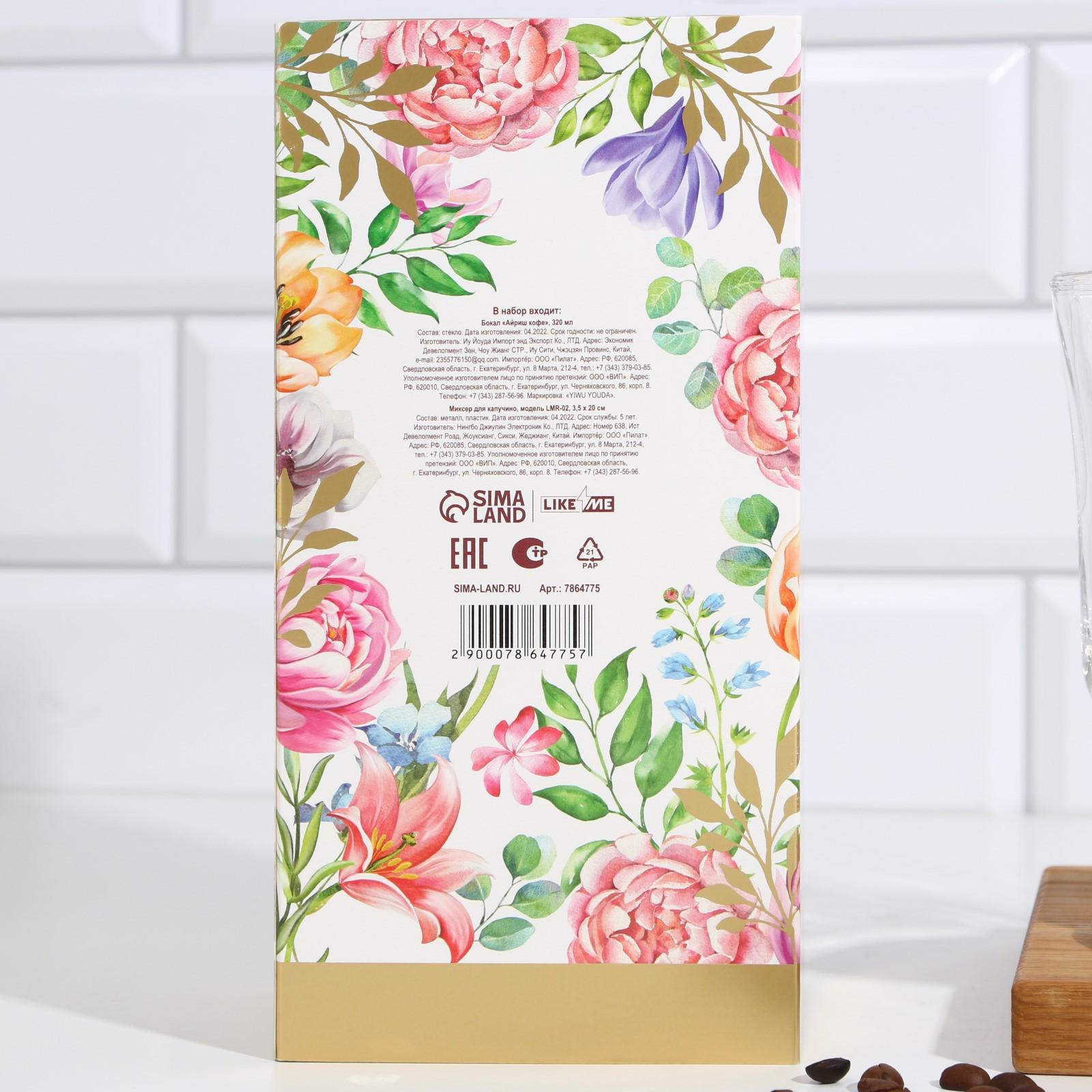 Подарочный набор кружка 200 мл, капучинатор от батареек «Цветы»