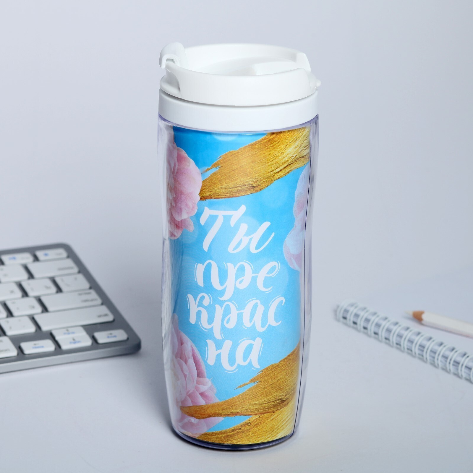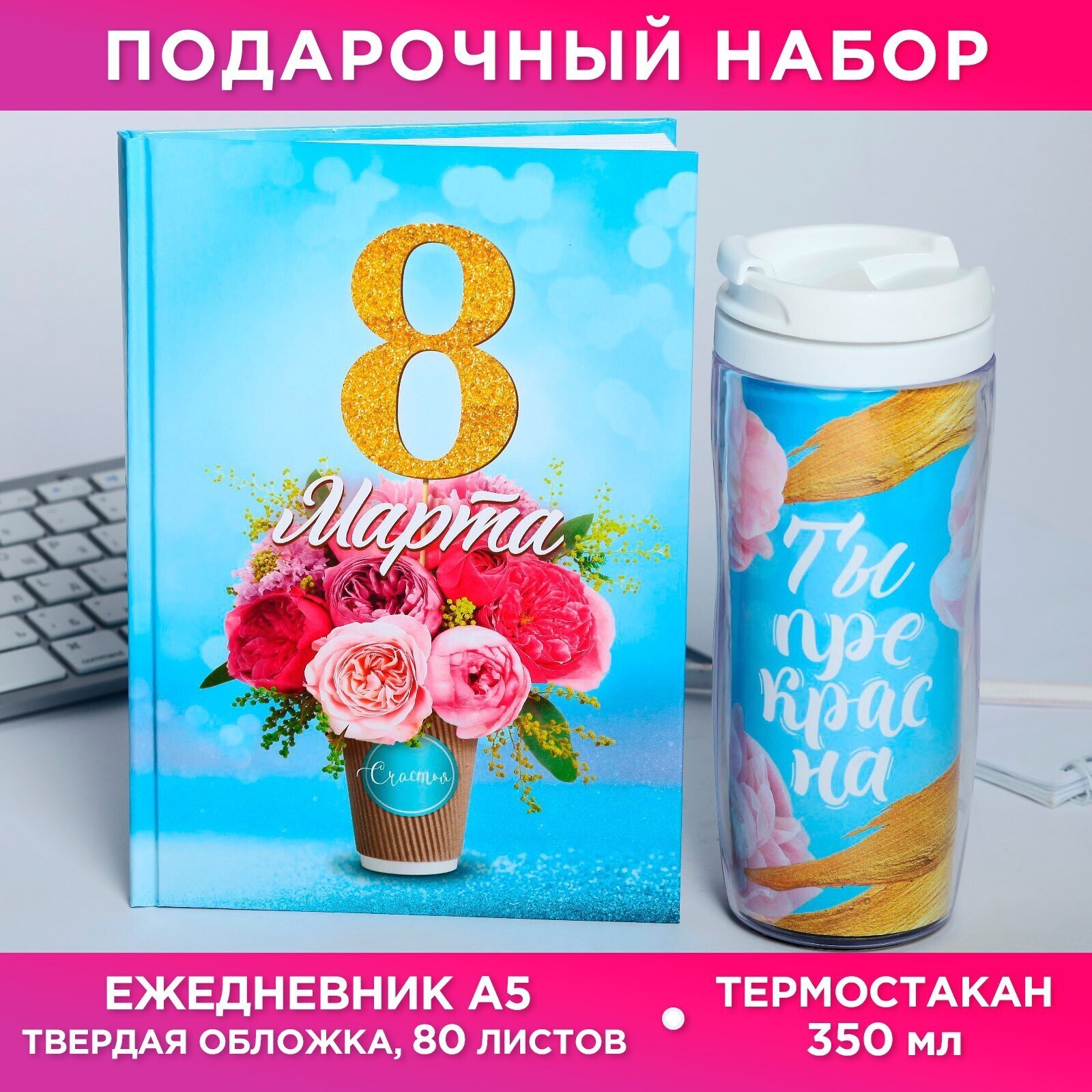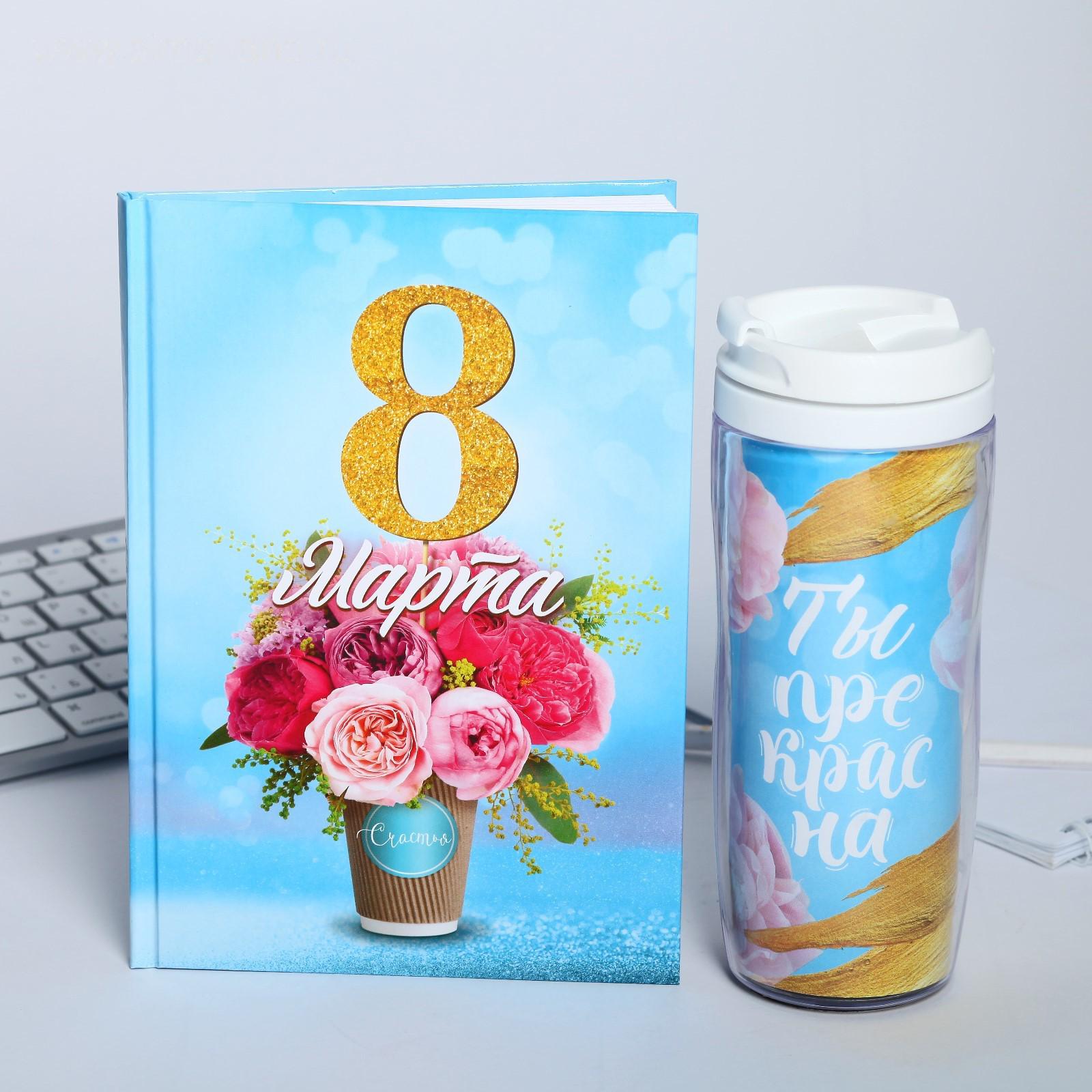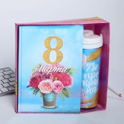 Подарочный набор «8 марта букет цветов»: ежедневник и термостакан