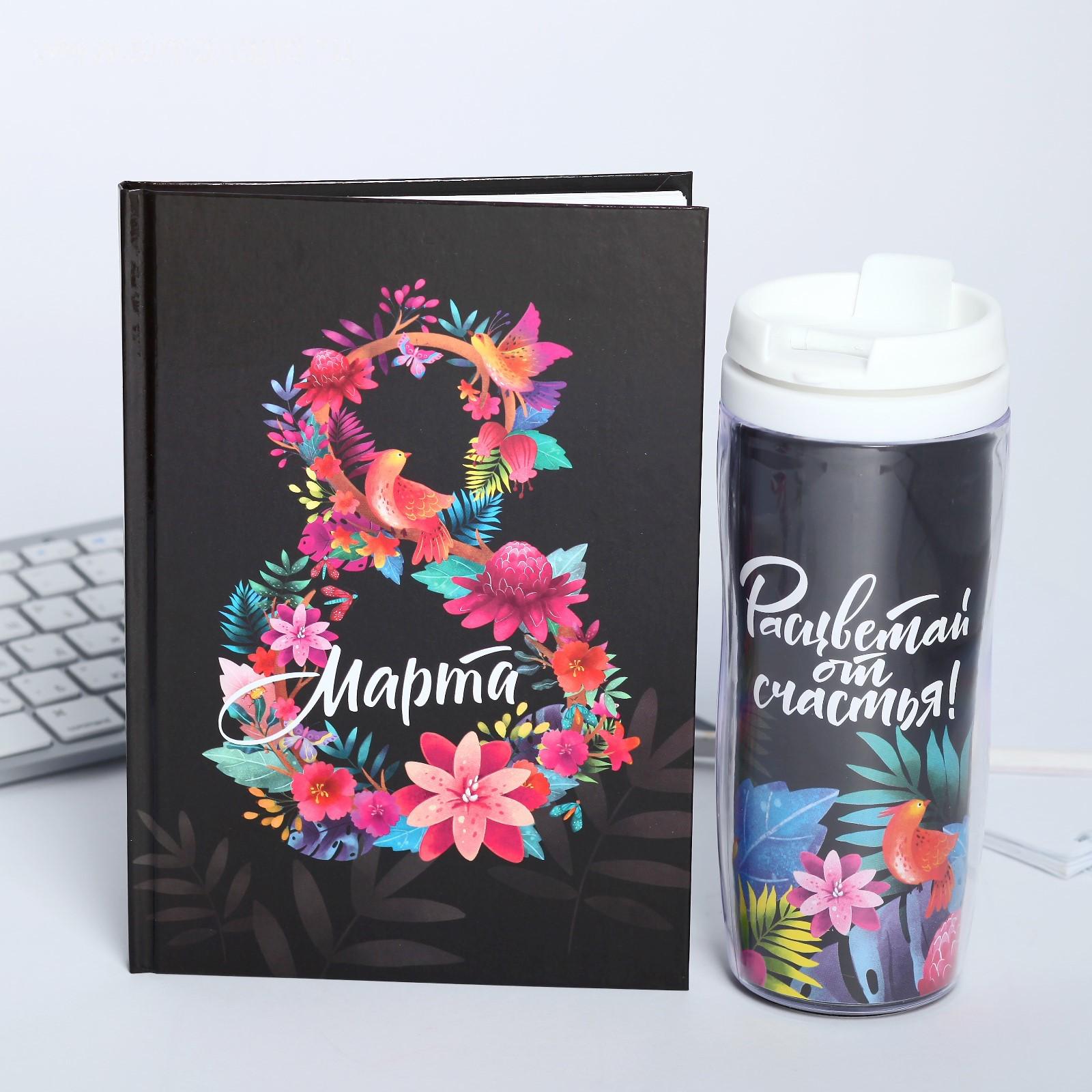 Подарочный набор «8 марта из цветов»: ежедневник и термостакан