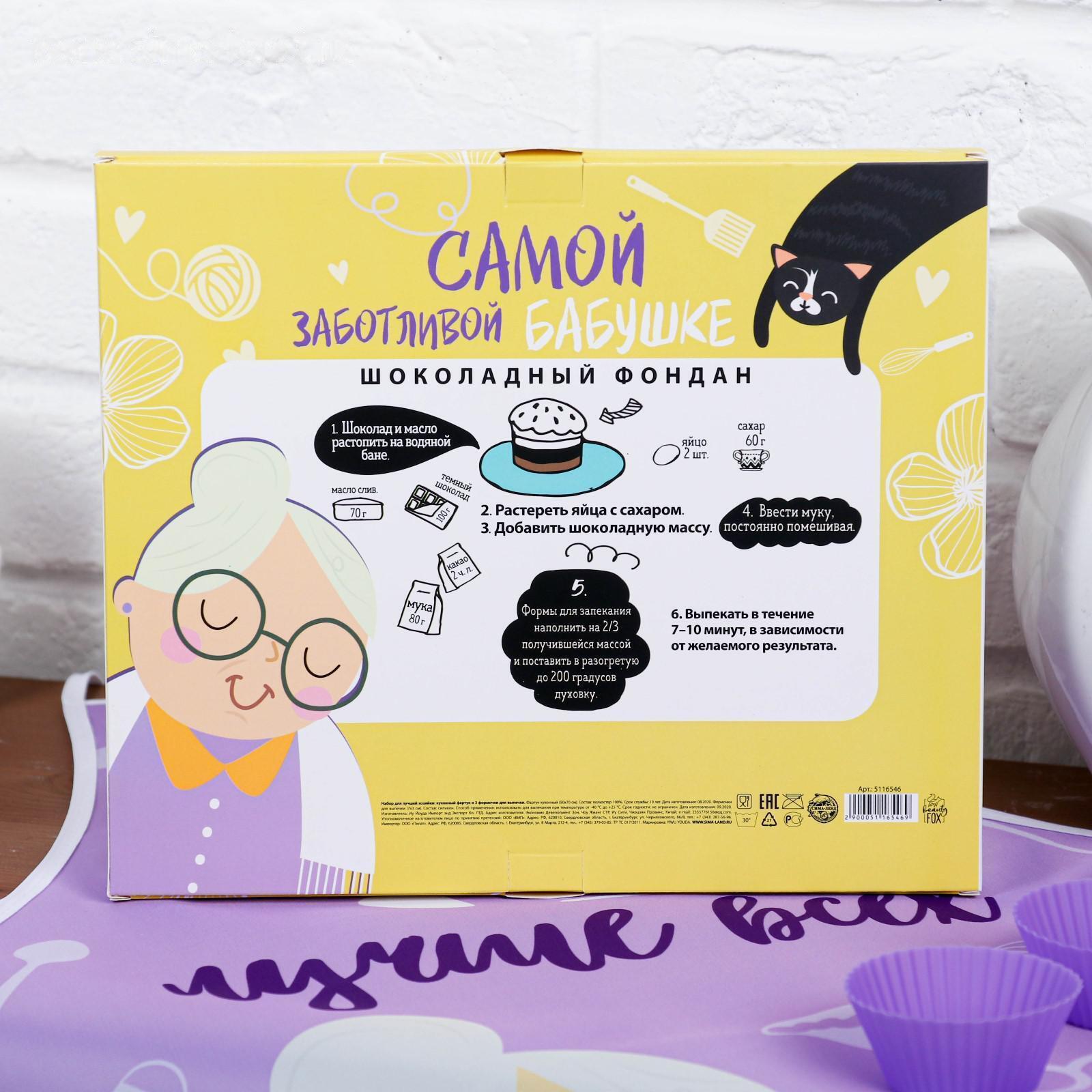 Набор "Самой заботливой бабушке" (кухонный фартук и формы для выпечки)