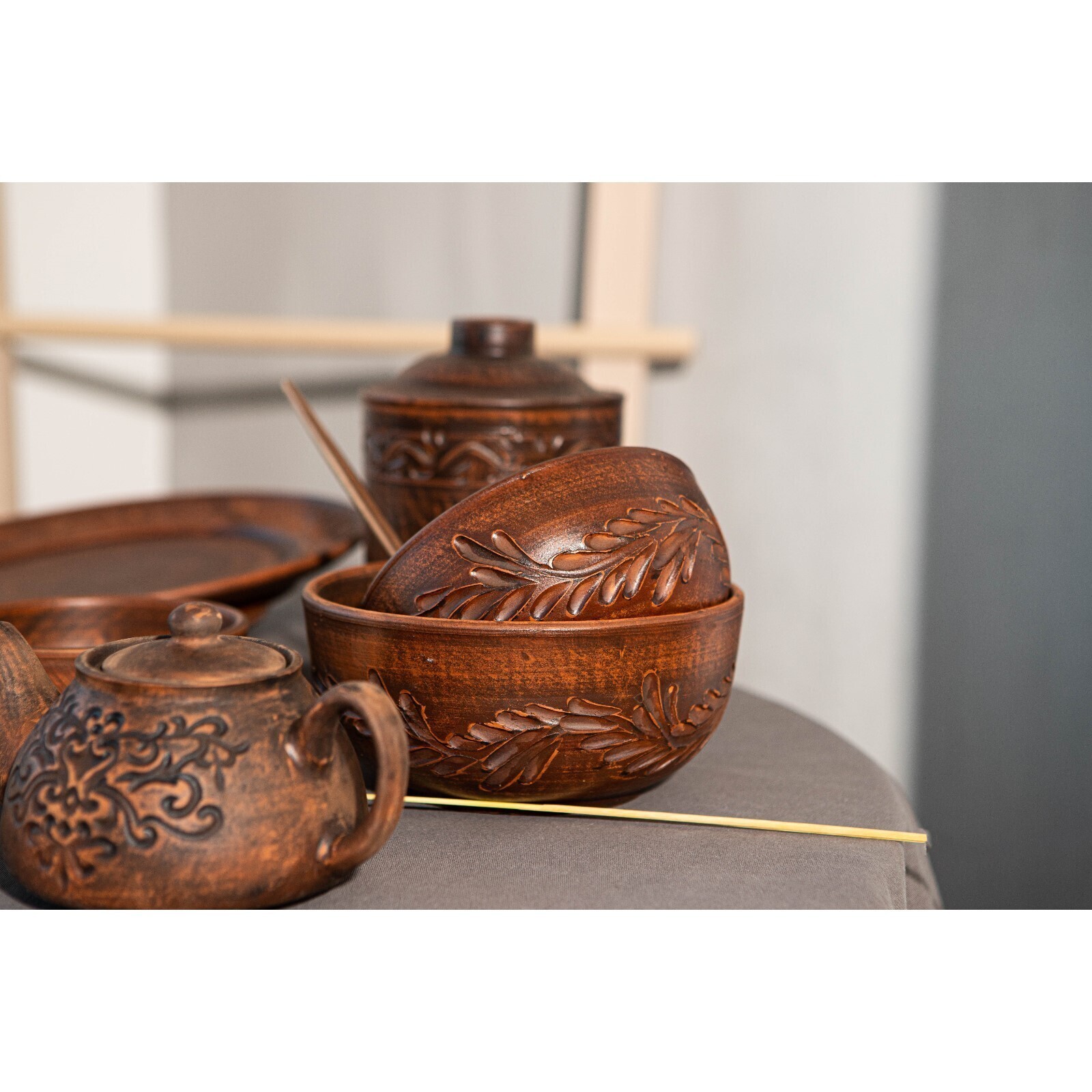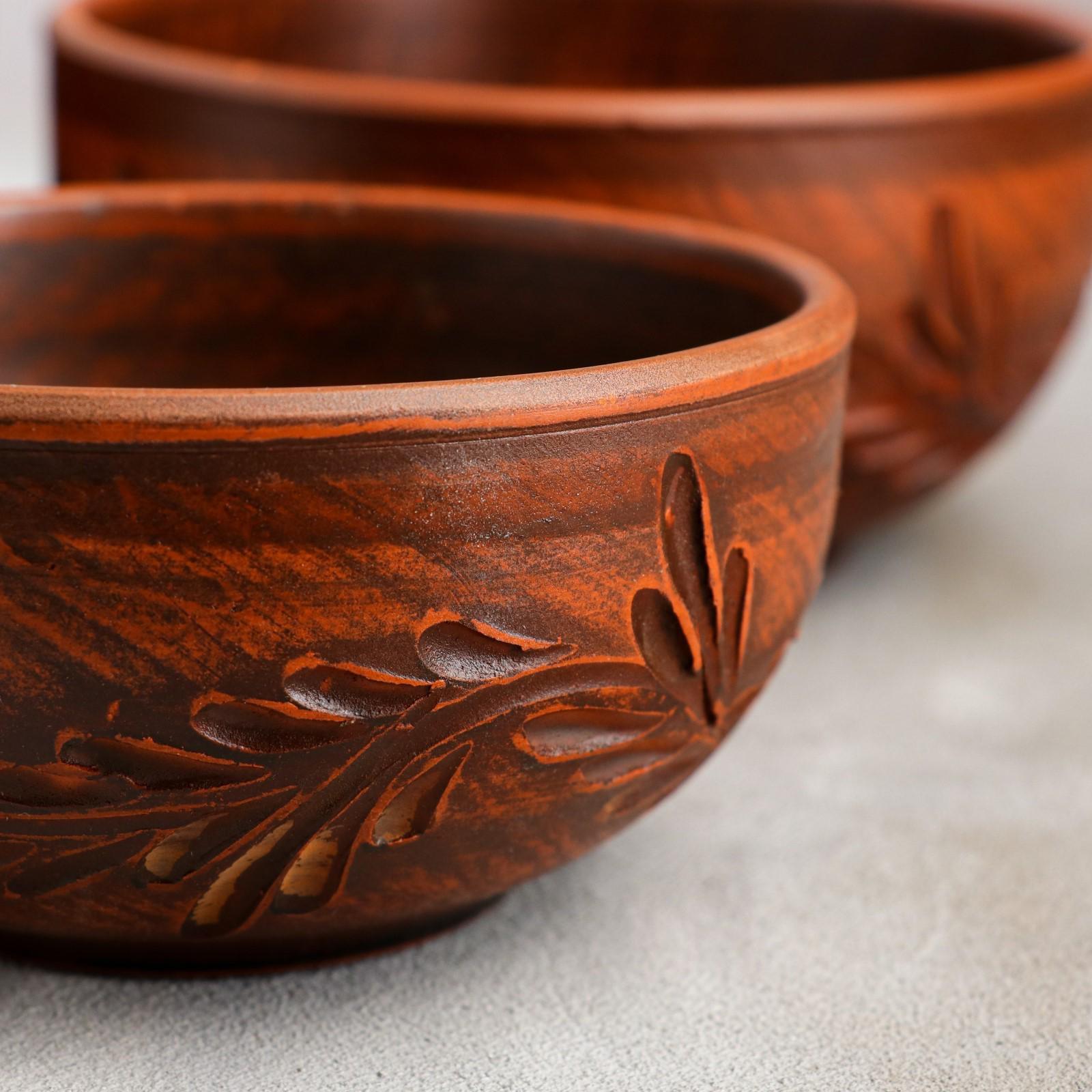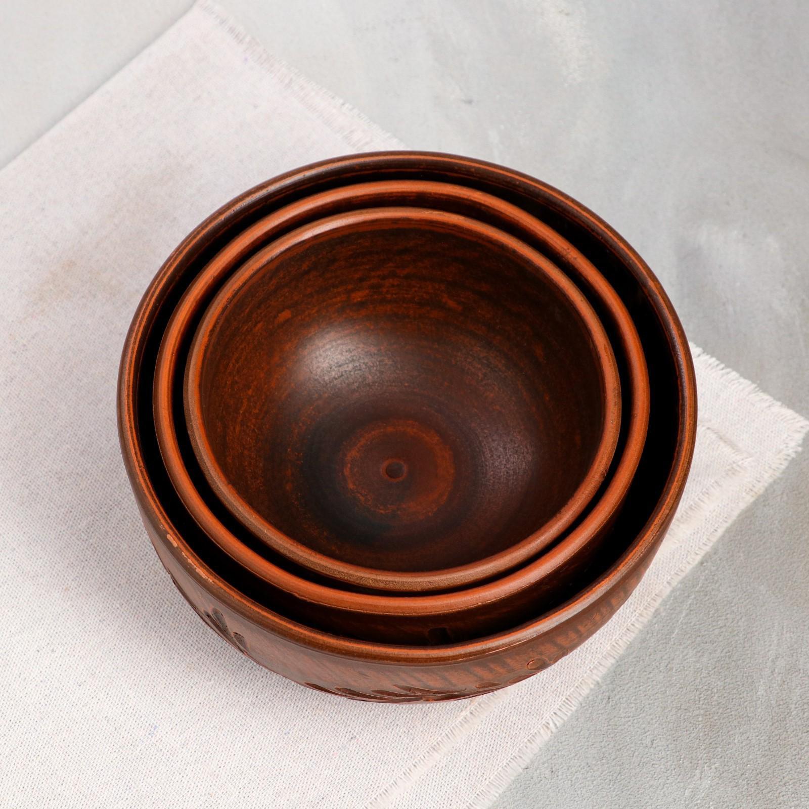 Набор салатников "Резной узор", 3 предмета, красная глина, 1/0.6/0.25 л