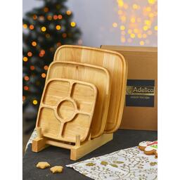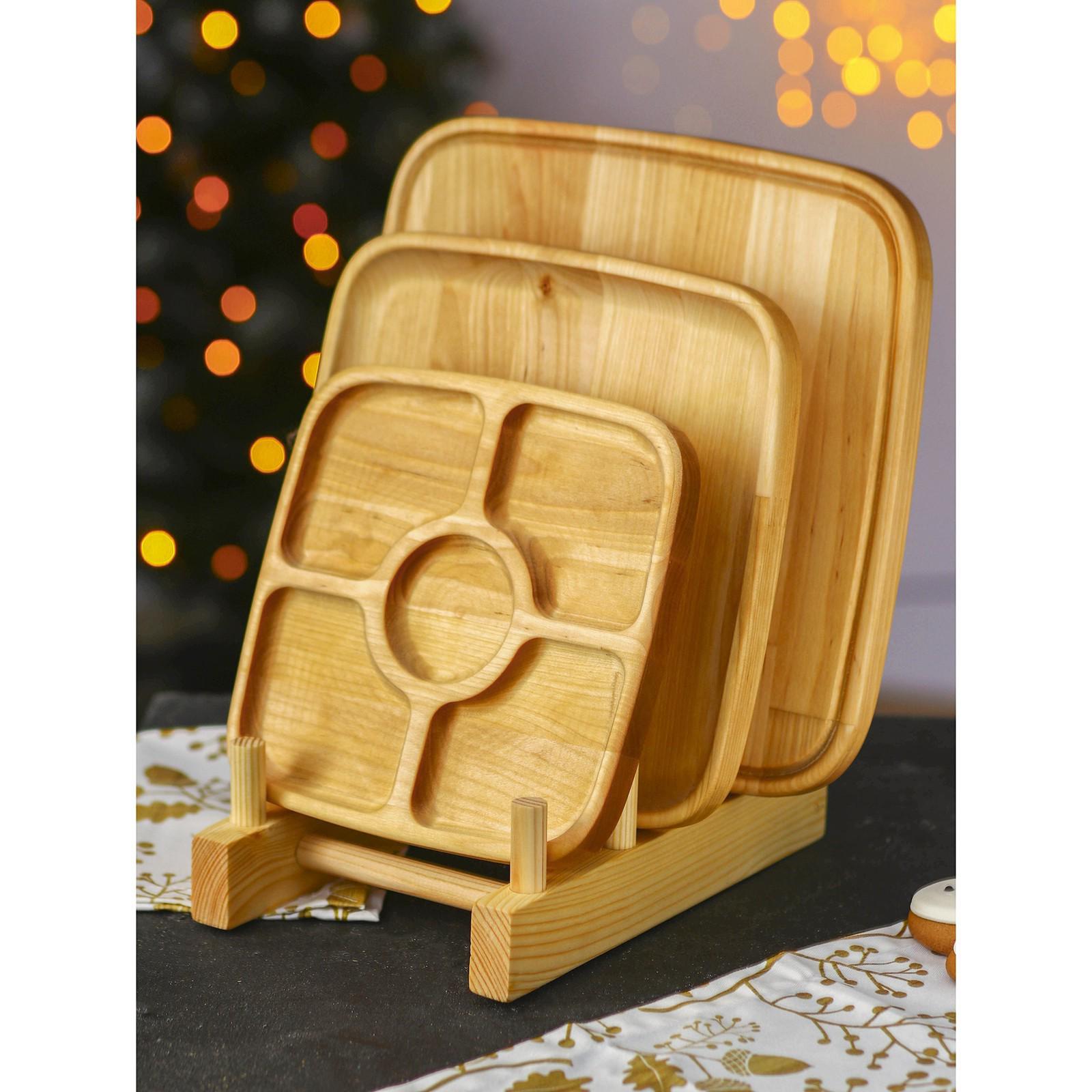 Набор посуды Adelica «Мечта хозяйки», доска разделочная d=28 см, блюдо для подачи d=24 см, менажница d=20 см, подставка, берёза