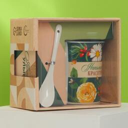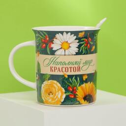 Кружка «Наполни мир» с ложкой и подставкой, 300 мл