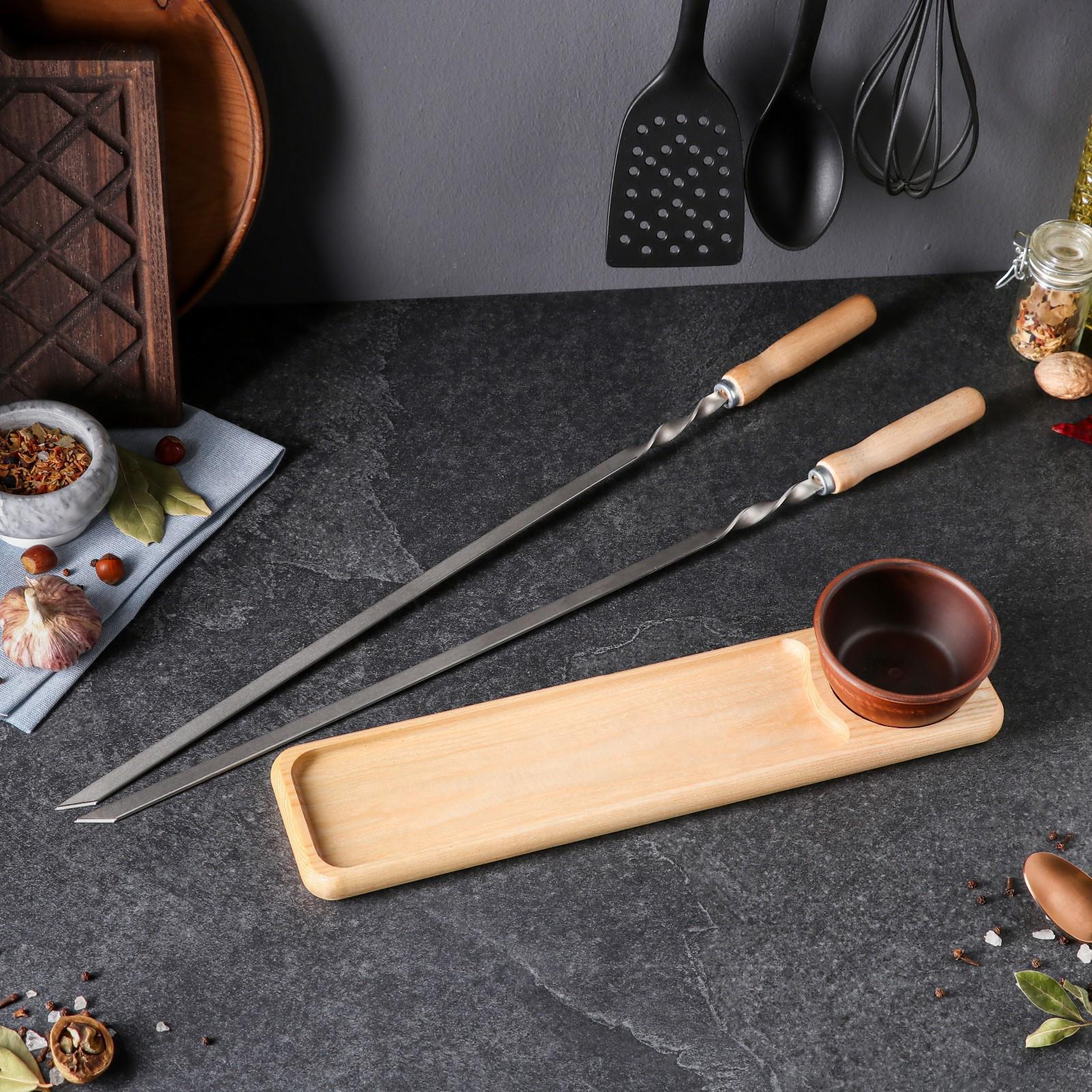 Подарочный набор "Для шашлыка", 4 предмета: 2 шампура, доска сервировочная, соусник