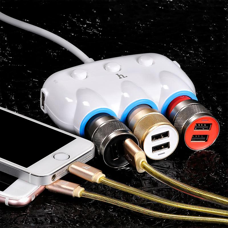 Разветвитель в прикуриватель Hoco C1 (белый)