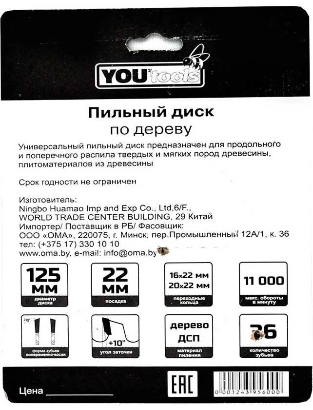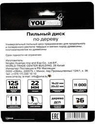 Пильный диск Yourtools т/с 125/22мм Z36 (дерево, косой зуб у. з. 10'