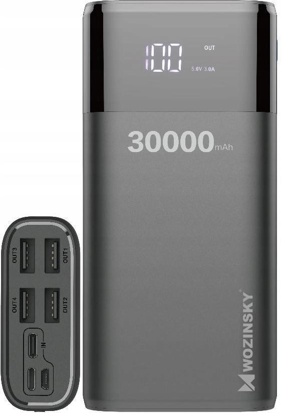 Wozinsky Power bank30000 мАг з 4 USB-портами, РК-дисплеєм