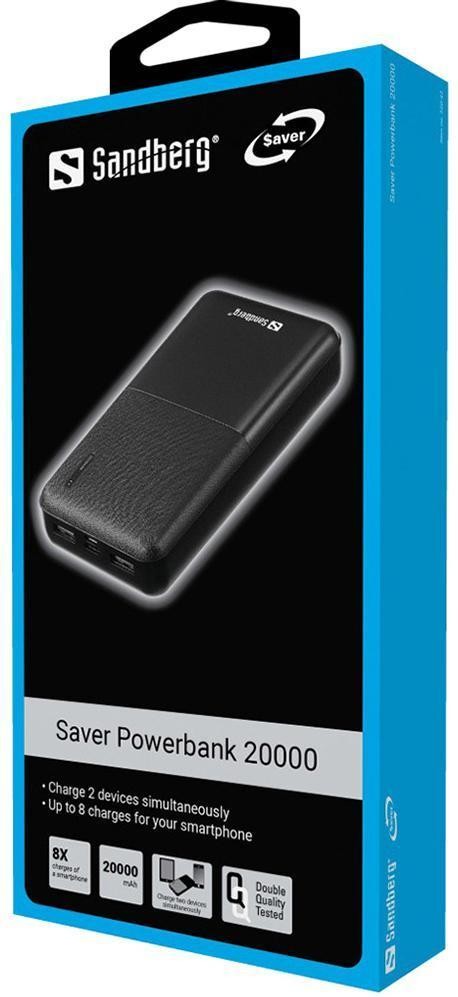 Батарея універсальна Sandberg 20000mAh, Saver, USB-C, Micro-USB, output: USB-A*2 Total 5V/2.4A (320-42)