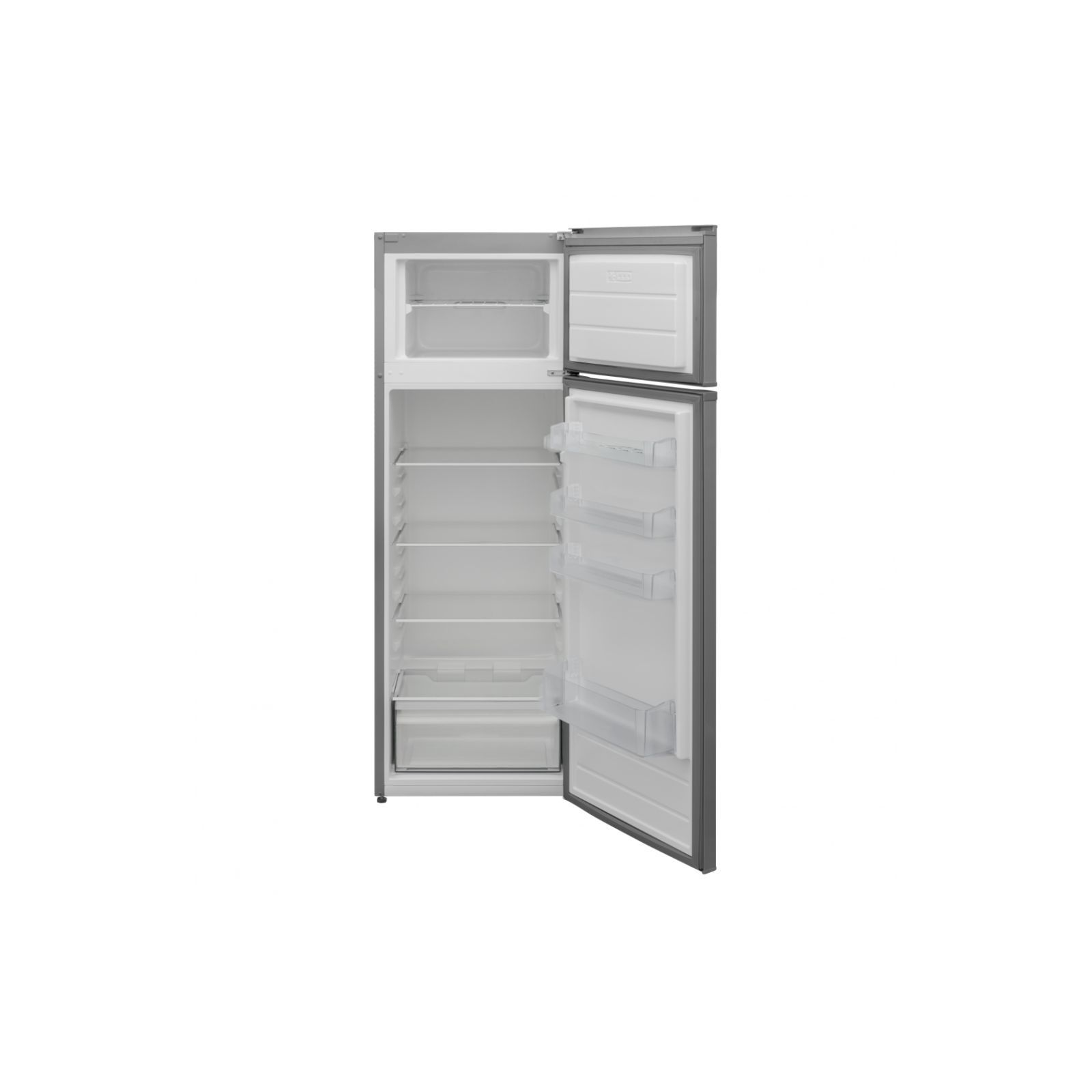 Двокамерний холодильник Heinner HF-V240SE++, клас енергоефективності: E, безморозна система охолодження, загальний об'єм: 242 л, об'єм холодильної камери: 201 л, об'єм морозильної камери: 41 л, механічне керування з регульованим термостатом, світлодіодне підсвічування, функція суперзаморожування, 3 скла холодильної камери полиці, відділення для фруктів і овочів, реверсивні дверцята, лоток для яєць, лоток для кубиків льоду, потужність заморожування: 2,6 кг/24 год, розміри (ШxГxВ): 54 x 57 x 161 см, хромована прикраса на ручці.