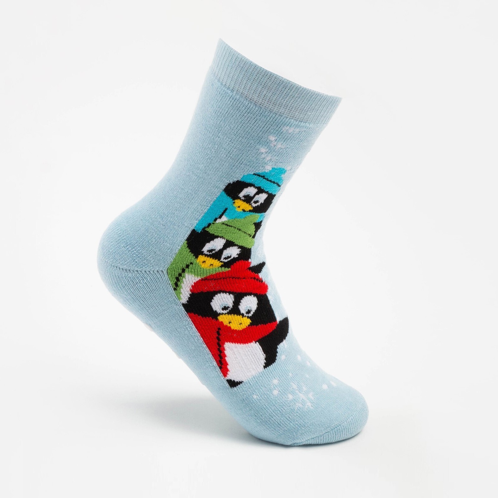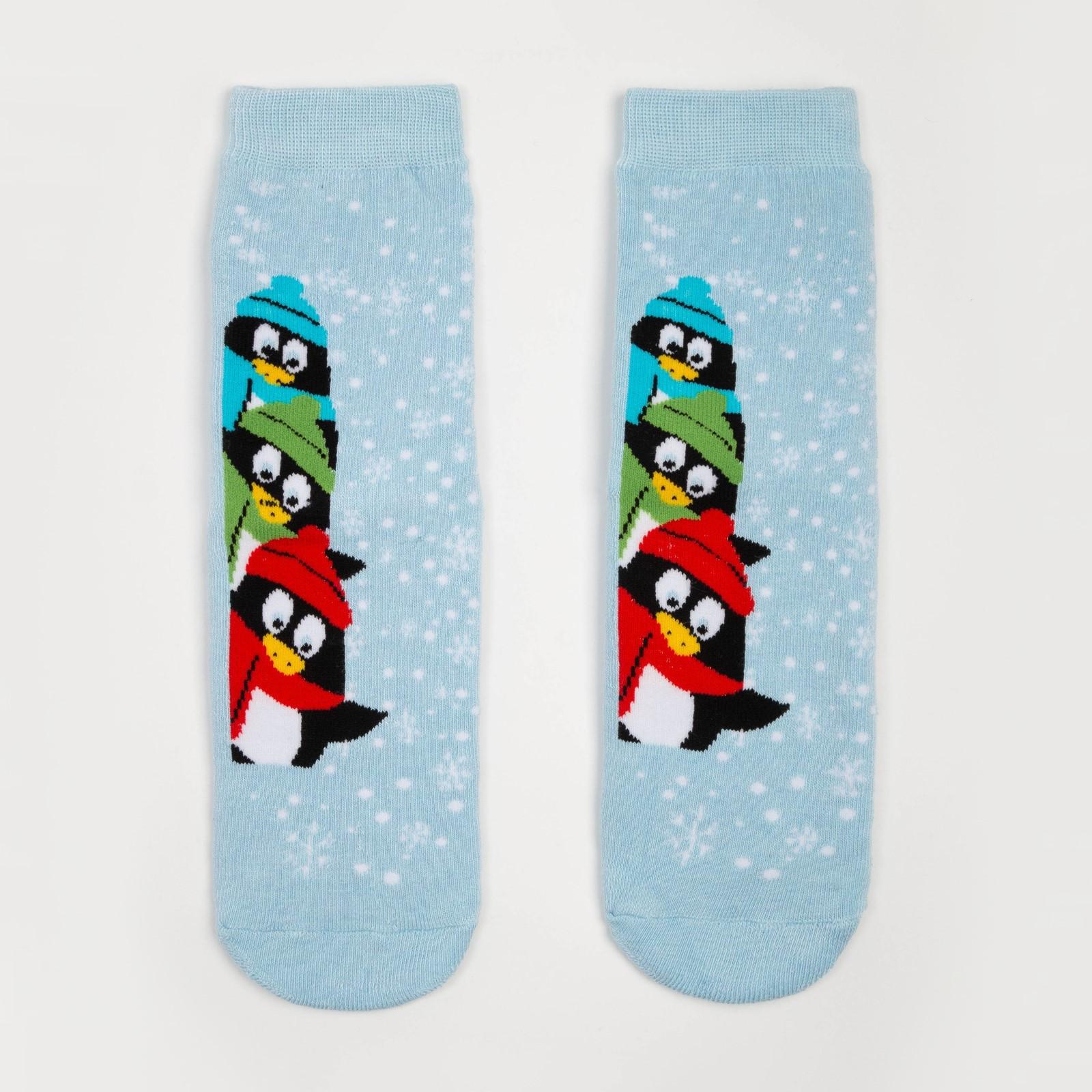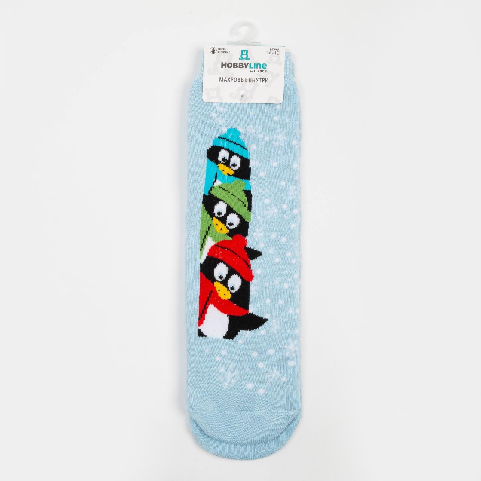 Носки женские махровые «Три пингвина», цвет голубой, размер 23-25 (36-40)