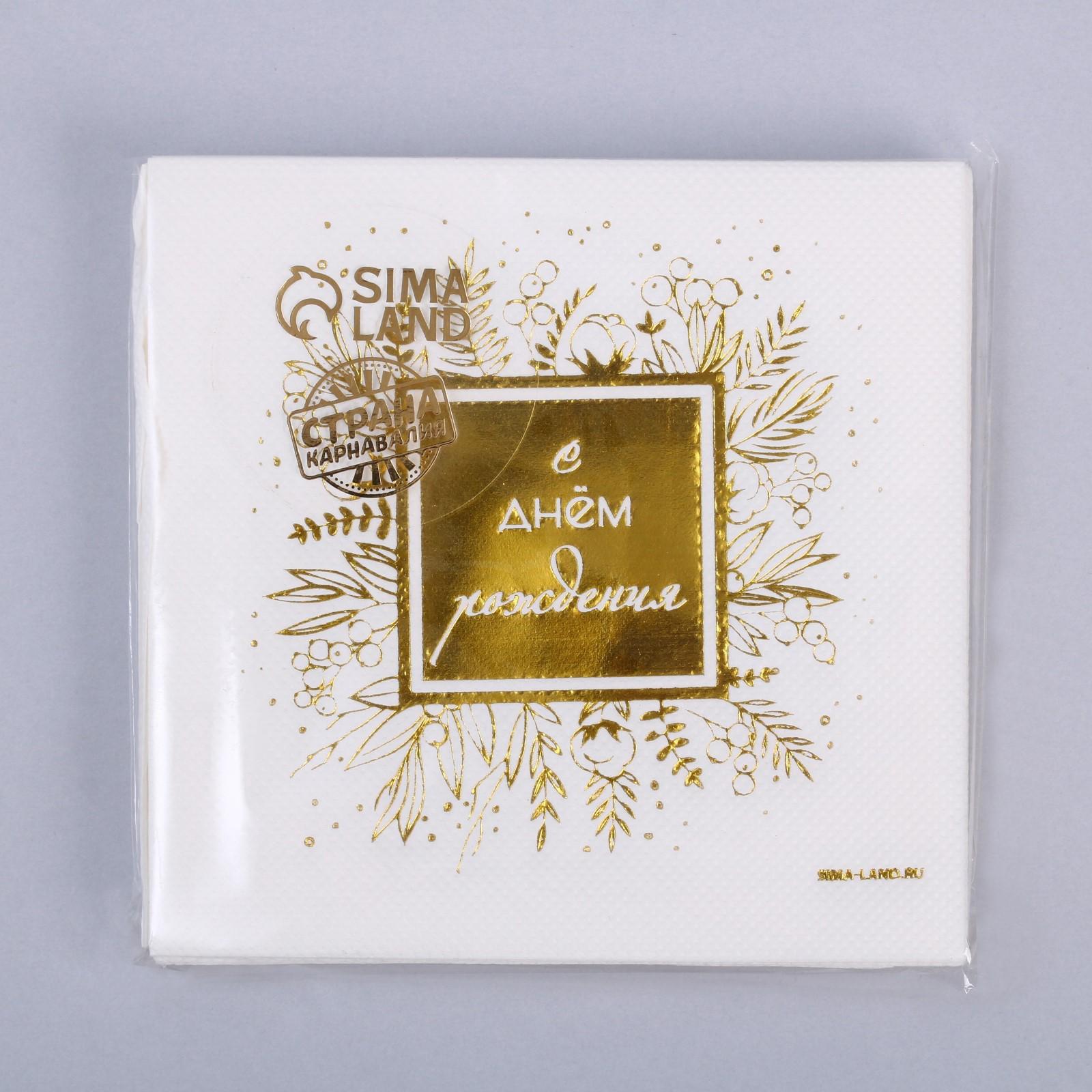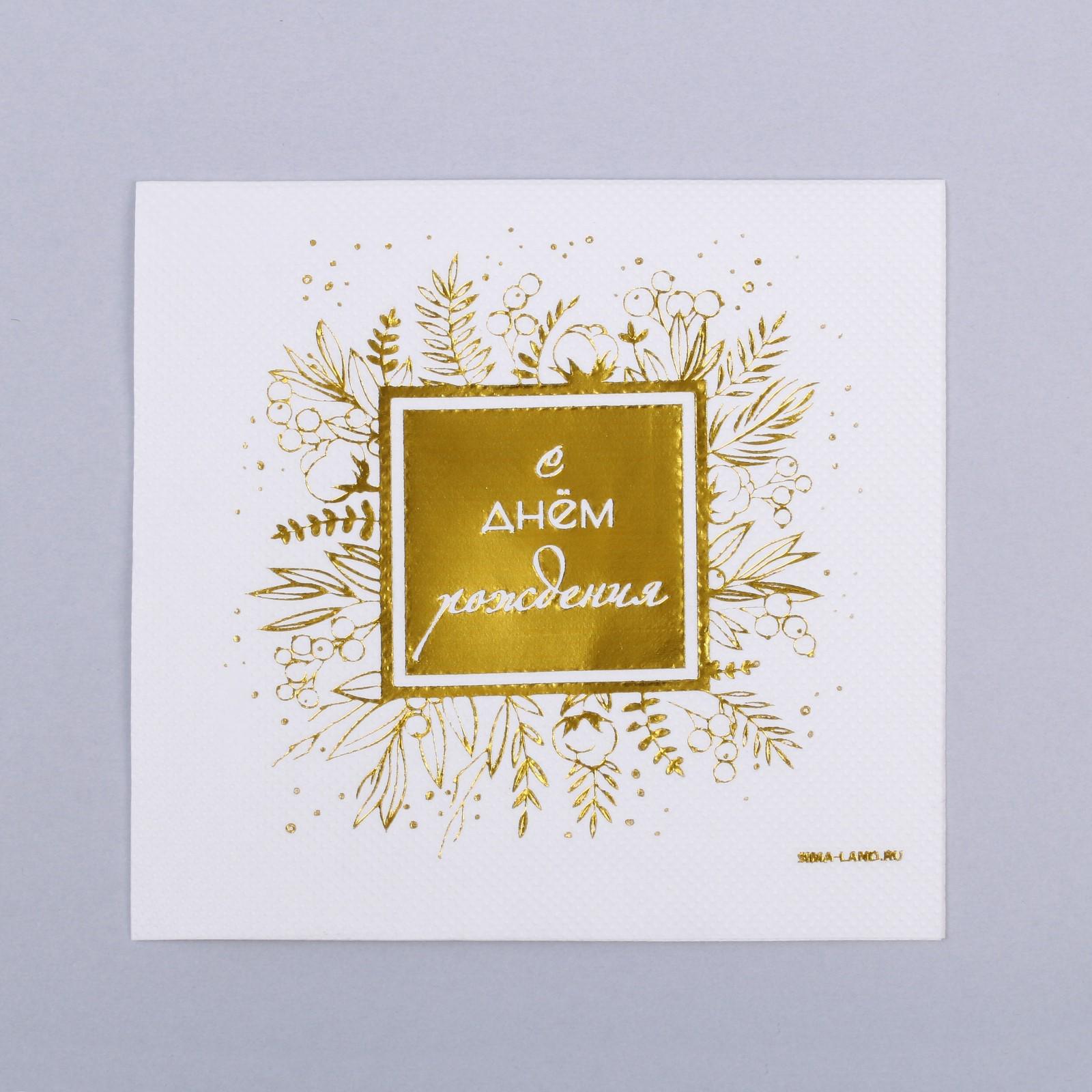Салфетки «С днём рождения», 20 шт, золотое тиснение, 25 х 25см