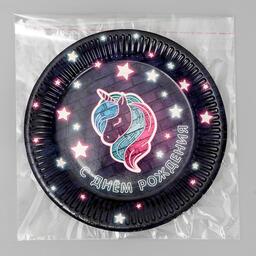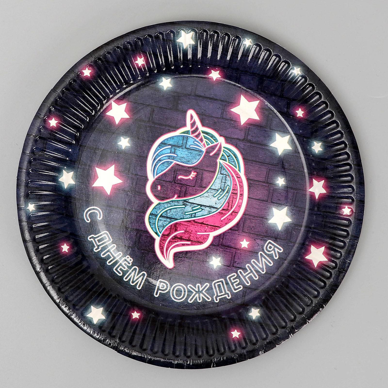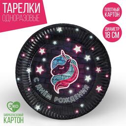 Тарелка бумажная «С днём рождения», праздничный единорог, 18 см