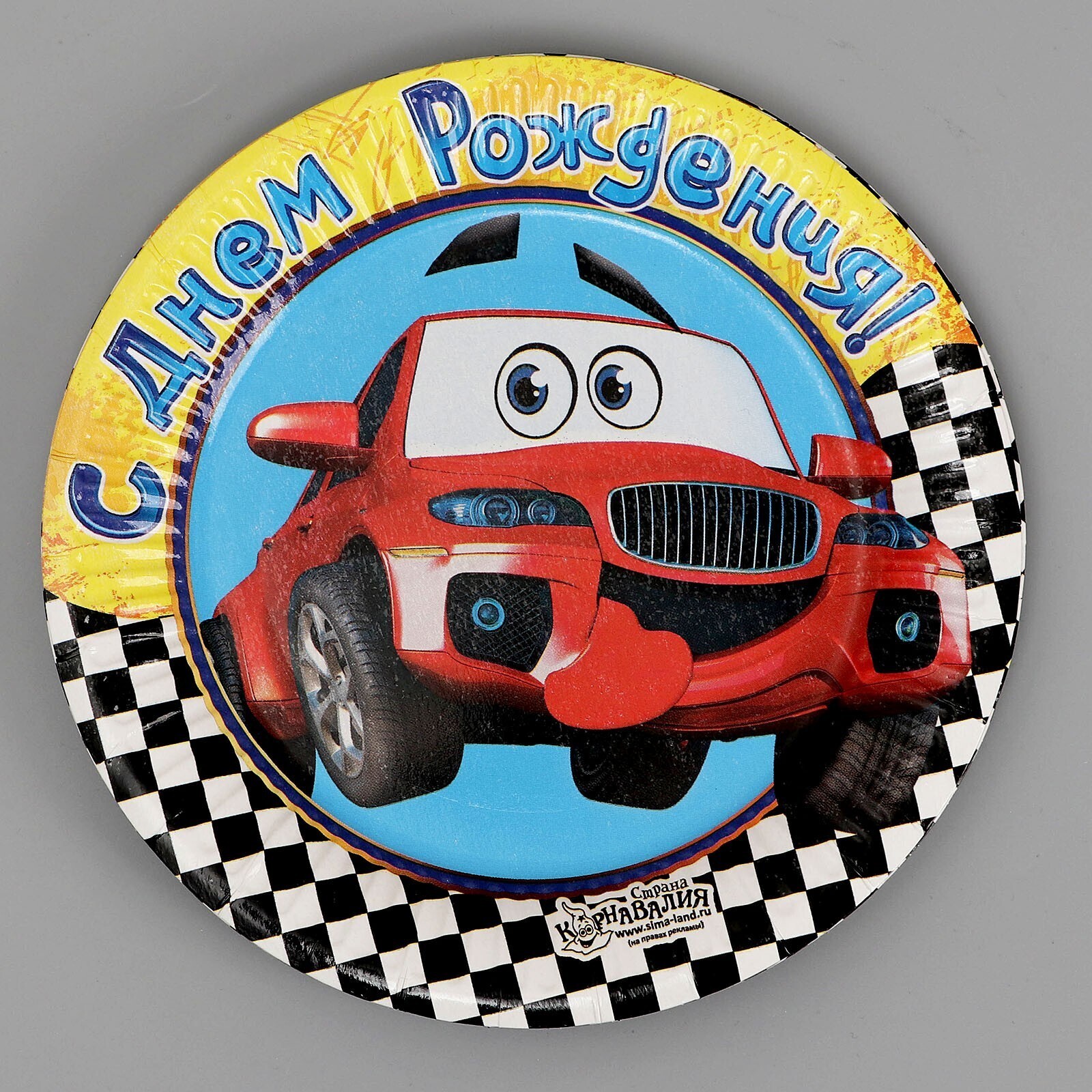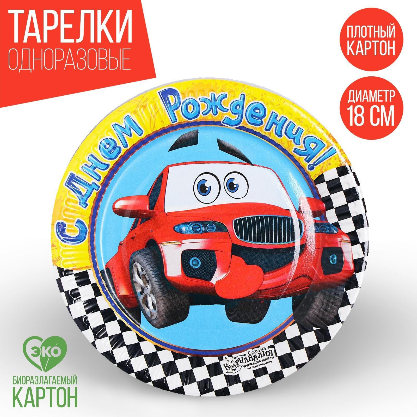 Тарелка бумажная «С днём рождения! Машинка», 18 см