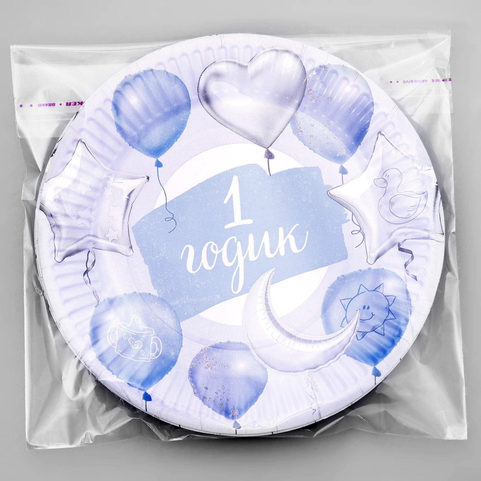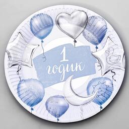 Тарелка бумажная «1 годик», звёзды и шарики, 18 см, цвет голубой