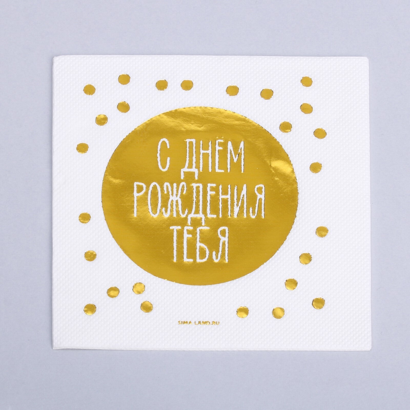 Салфетки «С днём рождения тебя», 20 шт, золотое тиснение, 25 х 25см