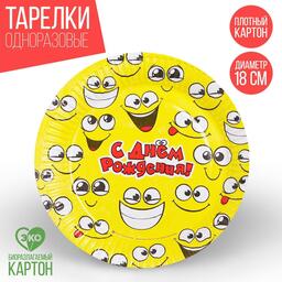 Бумажная тарелка «С днём рождения», смайлики, 18 см