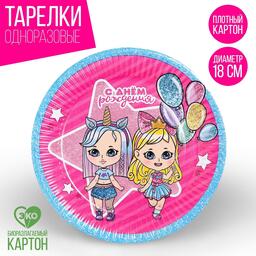 Тарелка бумажная «С днём рождения», куклы, 18 см
