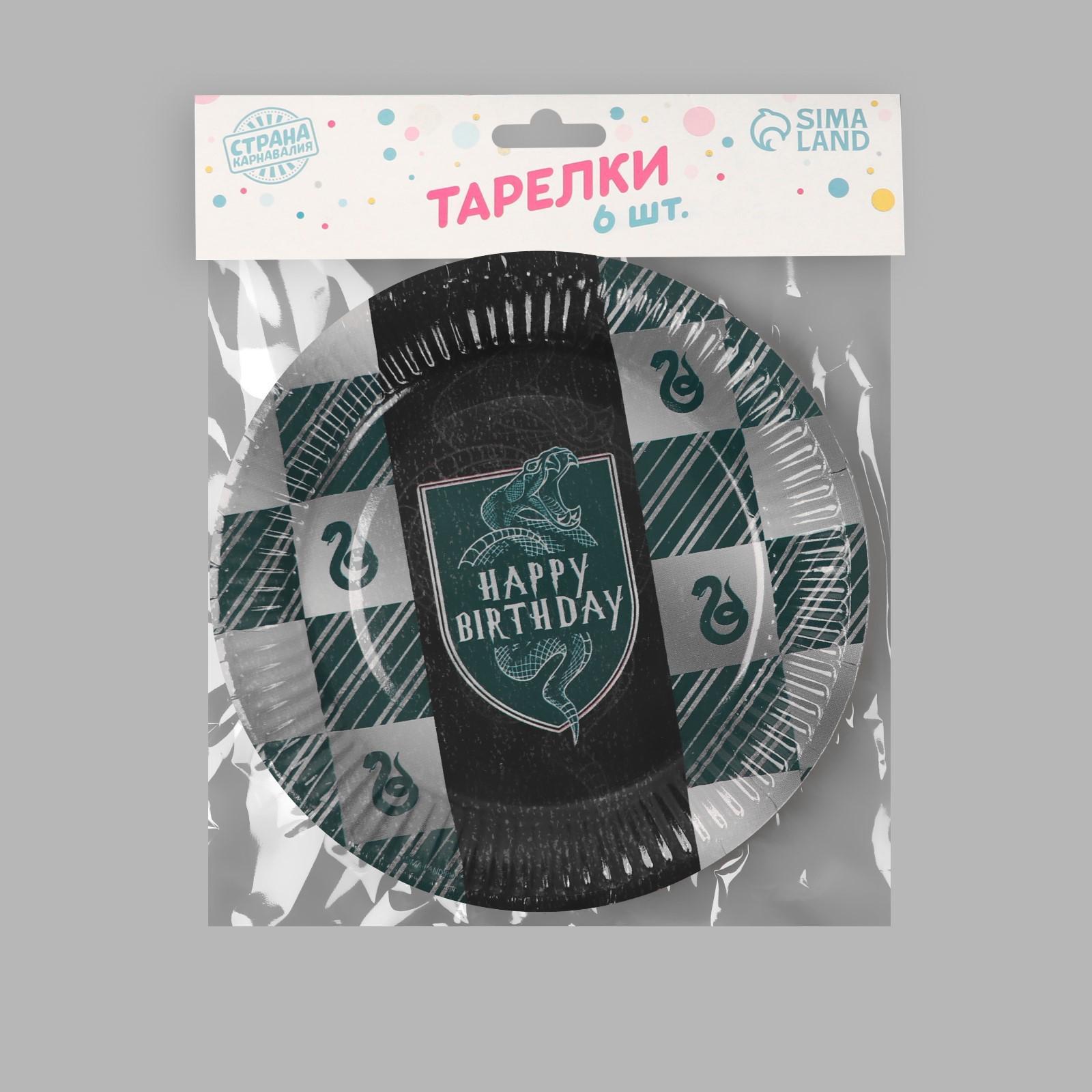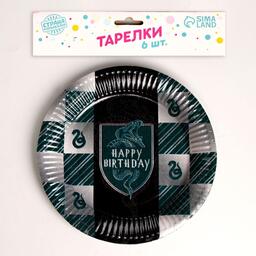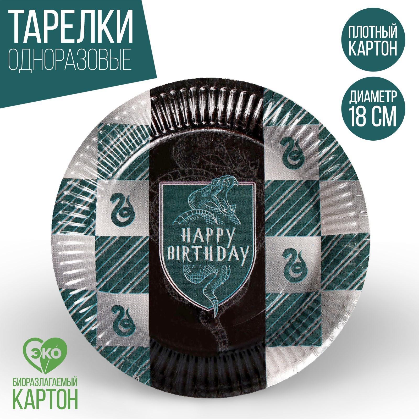 Тарелка бумажная Happy Birthday, цвет зеленый, набор 6 шт, 18 см