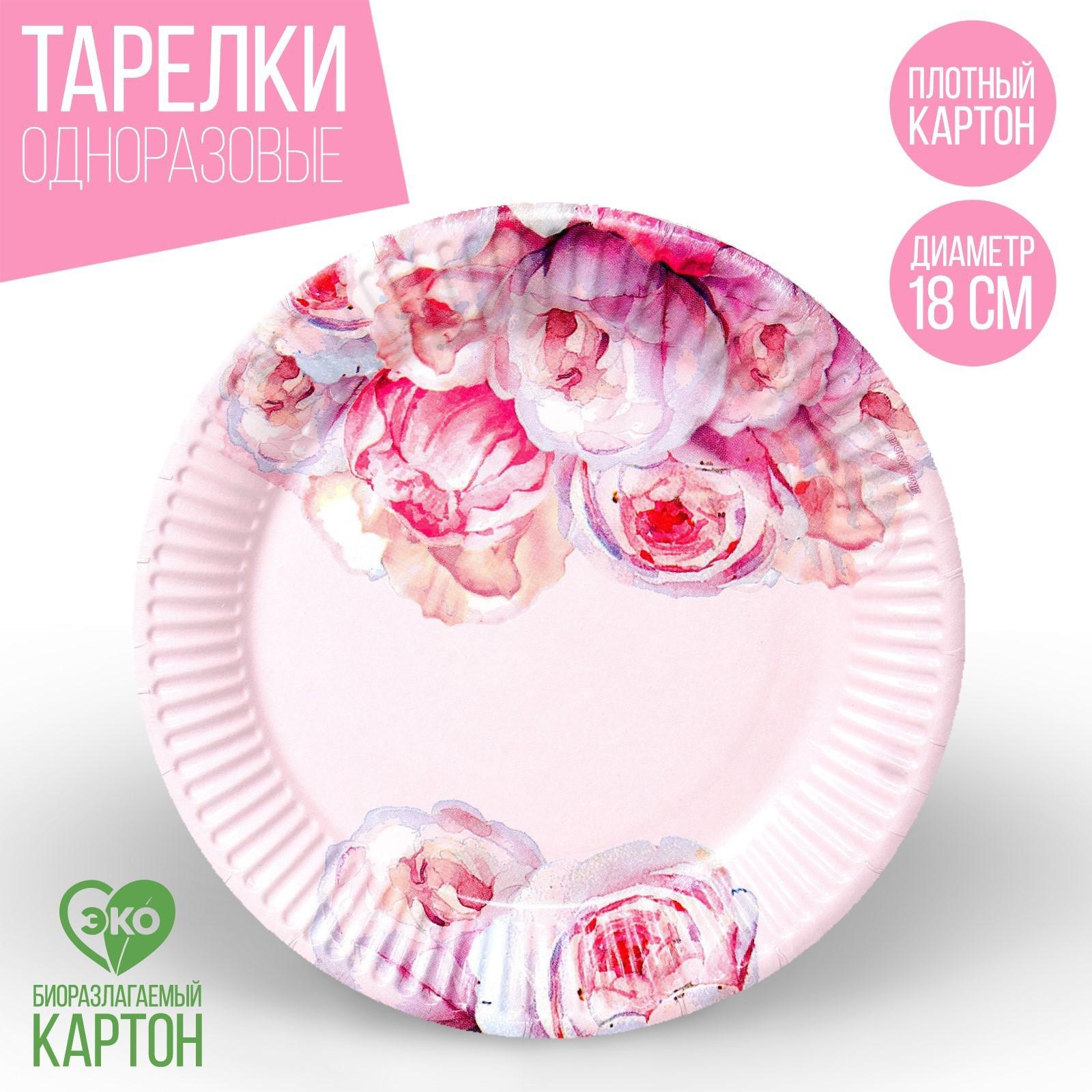 Тарелка бумажная «Пионы», набор 6 шт, 18 см