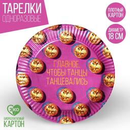 Тарелка бумажная «Главное - танцы», набор 6 шт, 18 см