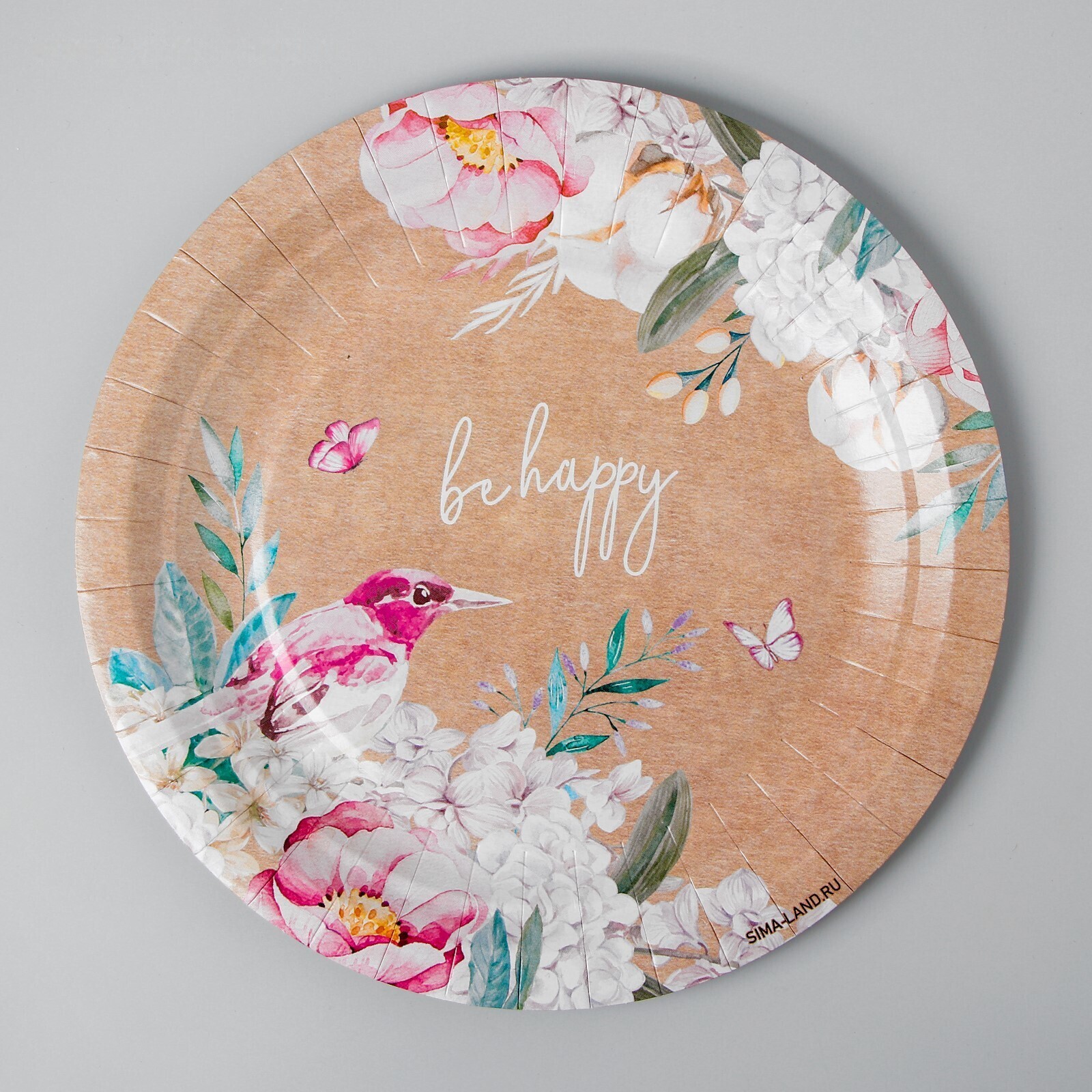 Тарелка одноразовая Flowers, крафтовая, однослойная, 18 см