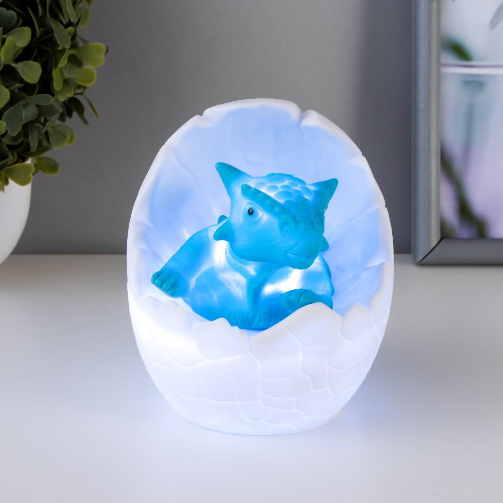 Ночник "Динозаврик" LED от батареек LR44 бело-синий 10х10х12 см