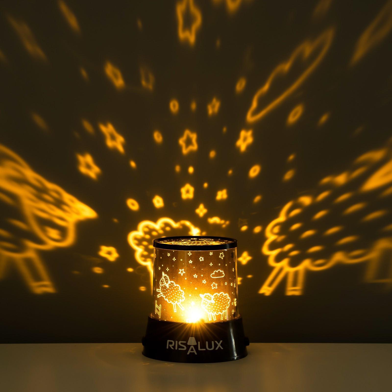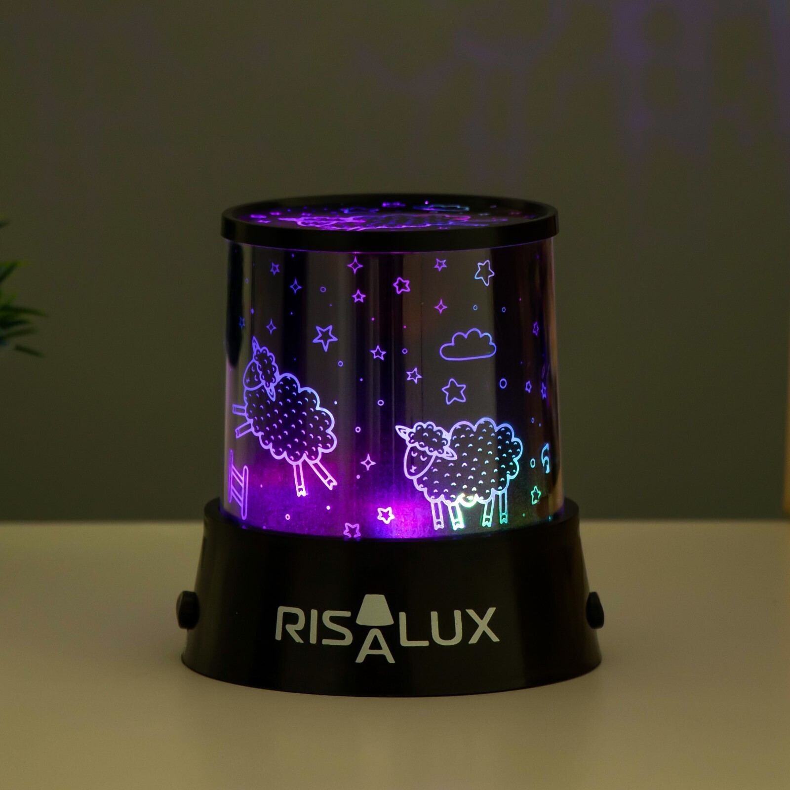 Ночник-проектор "Овечки" LED USB/от батареек черный 10,8х10,8х11,5 см