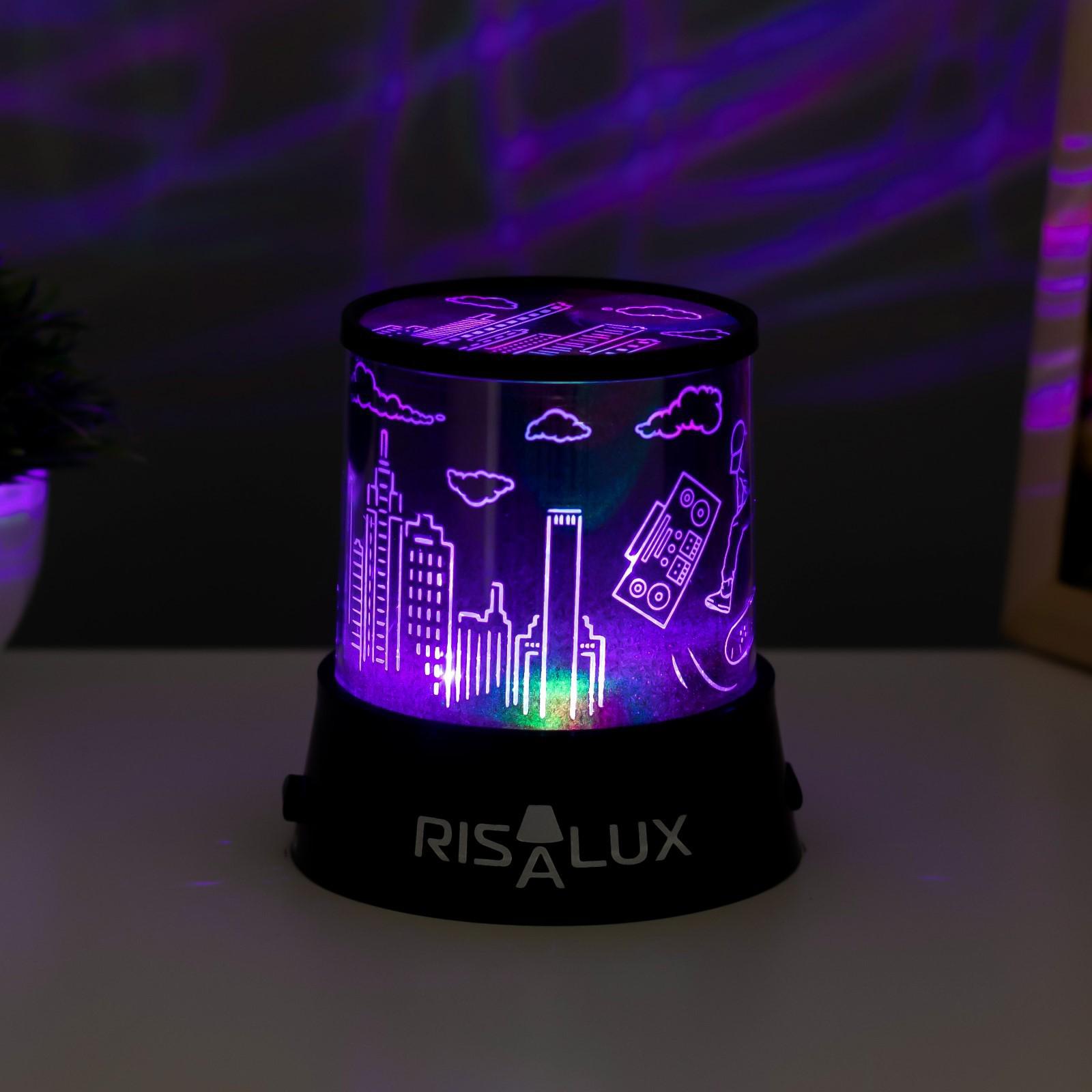 Ночник-проектор "Скейтер" LED USB/от батареек черный 10,8х10,8х11,5 см