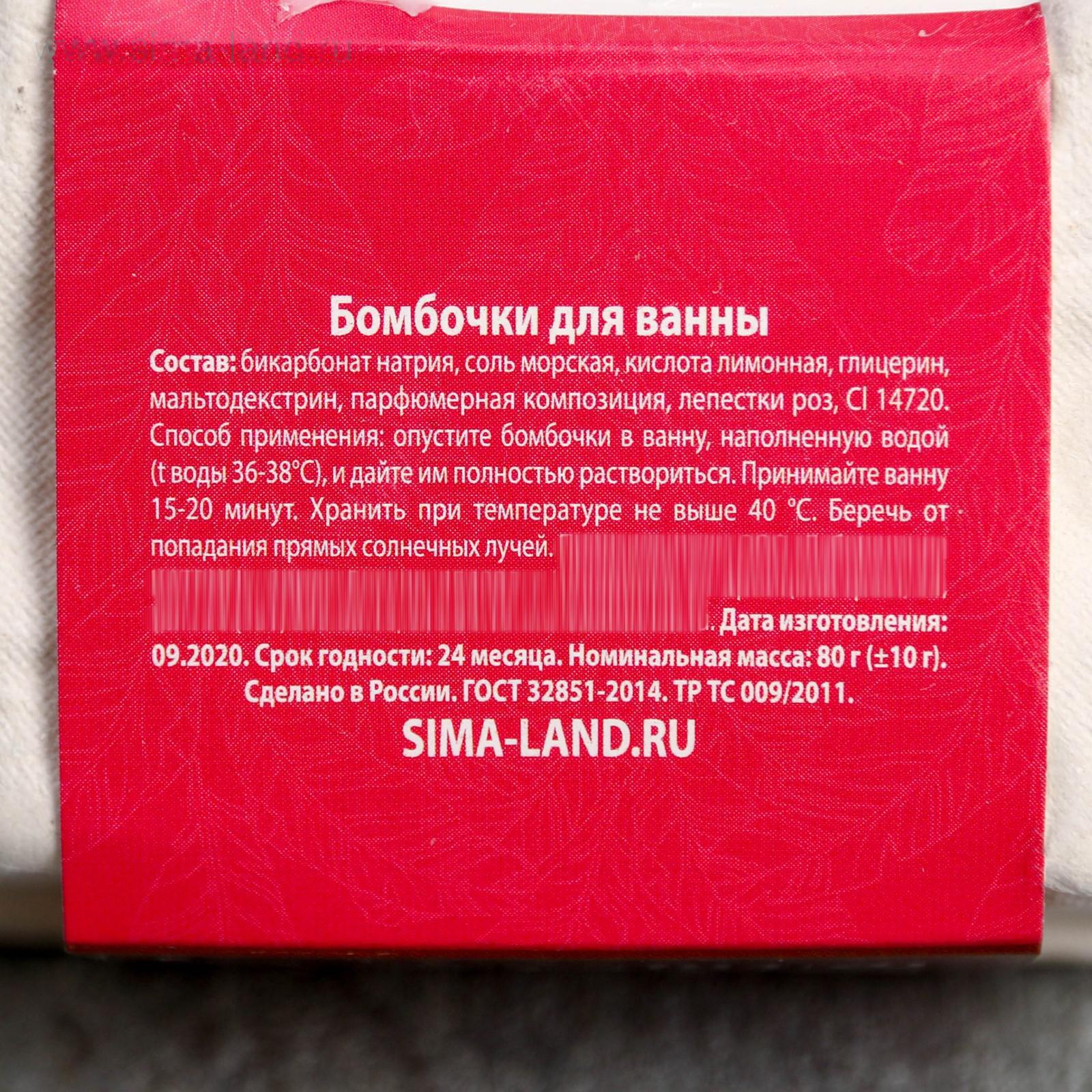 Состав: бикарбонат натрия, соль морская, кислота лимонная, глицерин, мальтодекстрин, парфюмерная композиция, лепестки роз, Сl 14720.