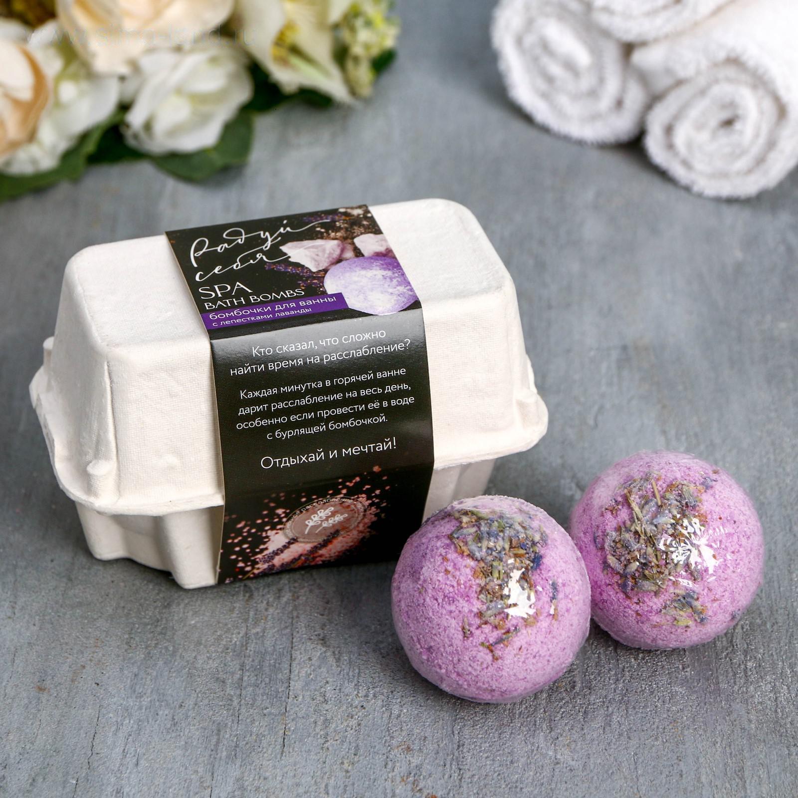 Бомбочки для ванны "Радуй себя" с лепестками лаванды, 40 г 2 шт