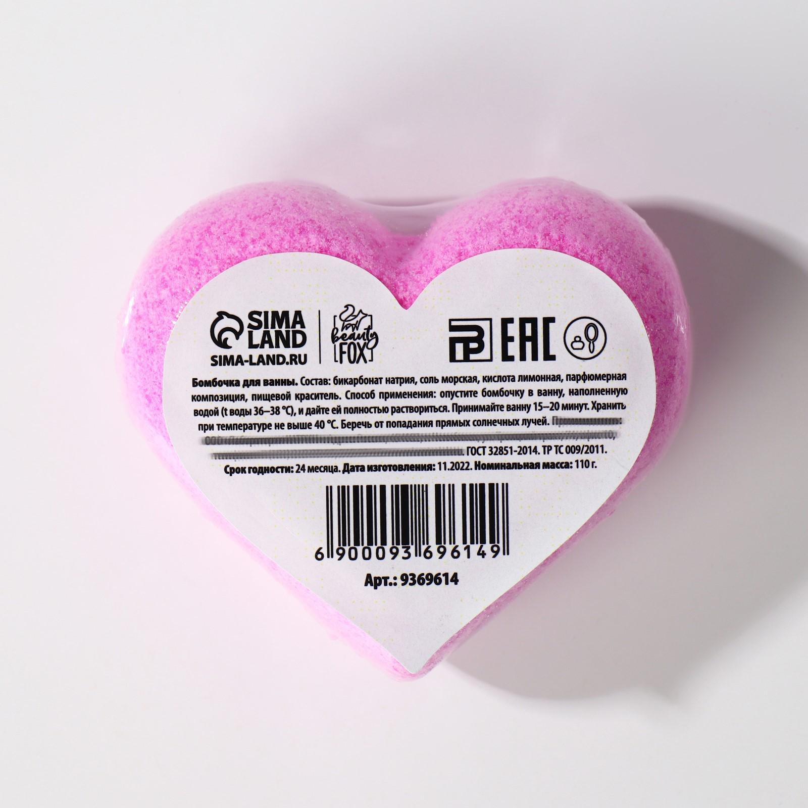 Бомбочка для ванны-сердце "Моей", 110 г, с ароматом малины