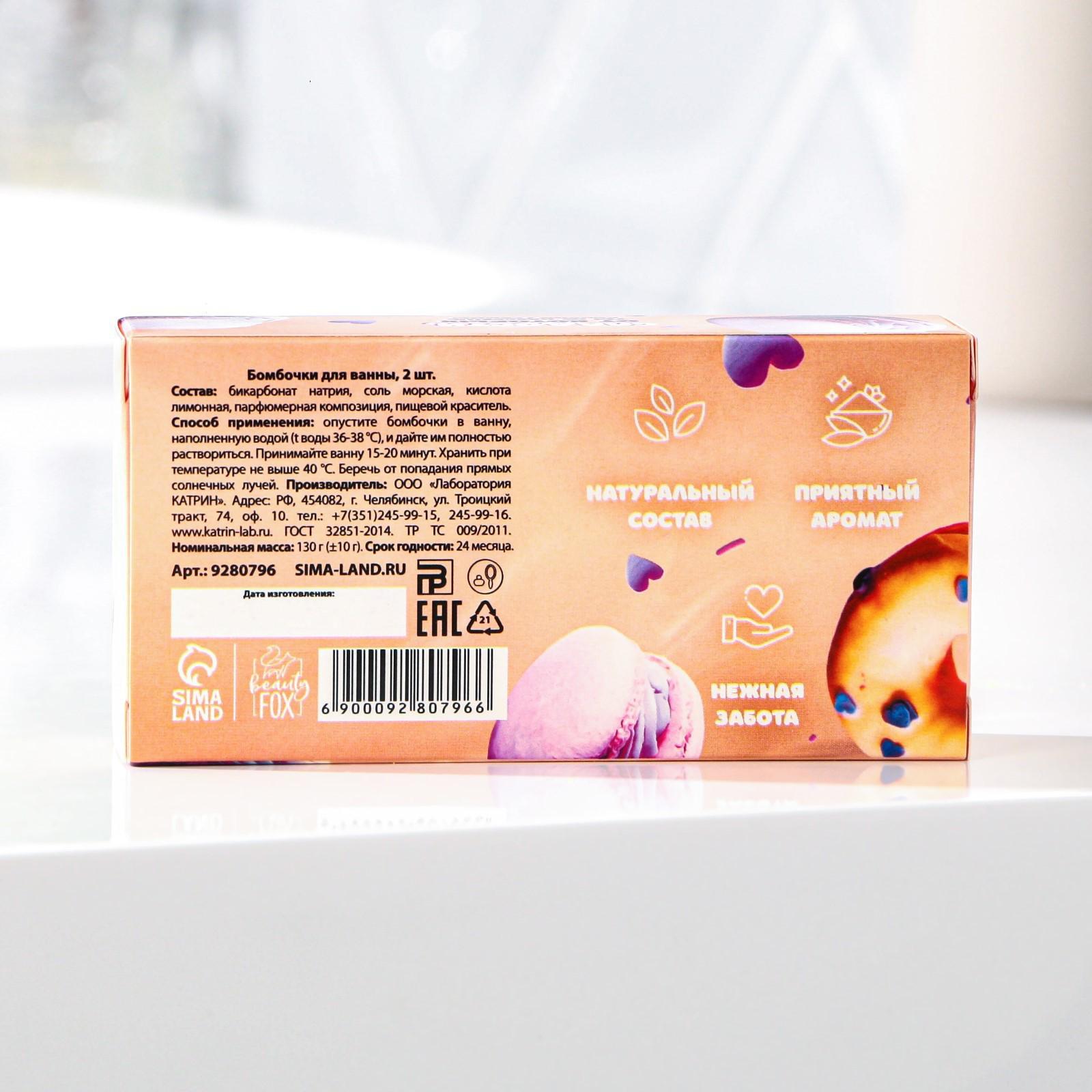 Бурлящие пончики "Сладости", 2 х 65 г, аромат черника и ваниль